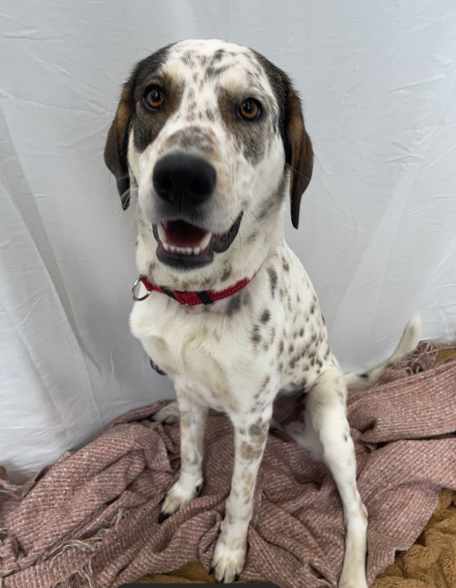 Jip is a young female Dalmation cross looking for her forever home. She is an incredibly friendly pup who loves to say hello to everyone she meets! Jip would benefit from some basic manners training, but is more than willing and eager to learn. People and other pets are no problem for her - she loves them all! If there are any smaller pets in her new home she may need slow introductions to help her get used to them.