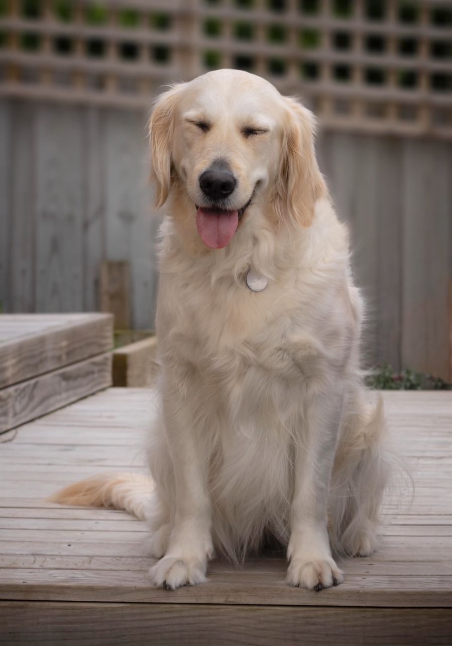 A typical day for Betty starts with a morning cuddle, followed by a gentle brushing session and her medication hidden in meatballs. She then sniffs around for more hidden treats before settling down while her family gets ready for the day. After a walk, she happily snoozes on the floor while the kids play. Dinnertime is followed by some television time before Betty retreats to her crate, her safe place, complete with a soothing sound machine.