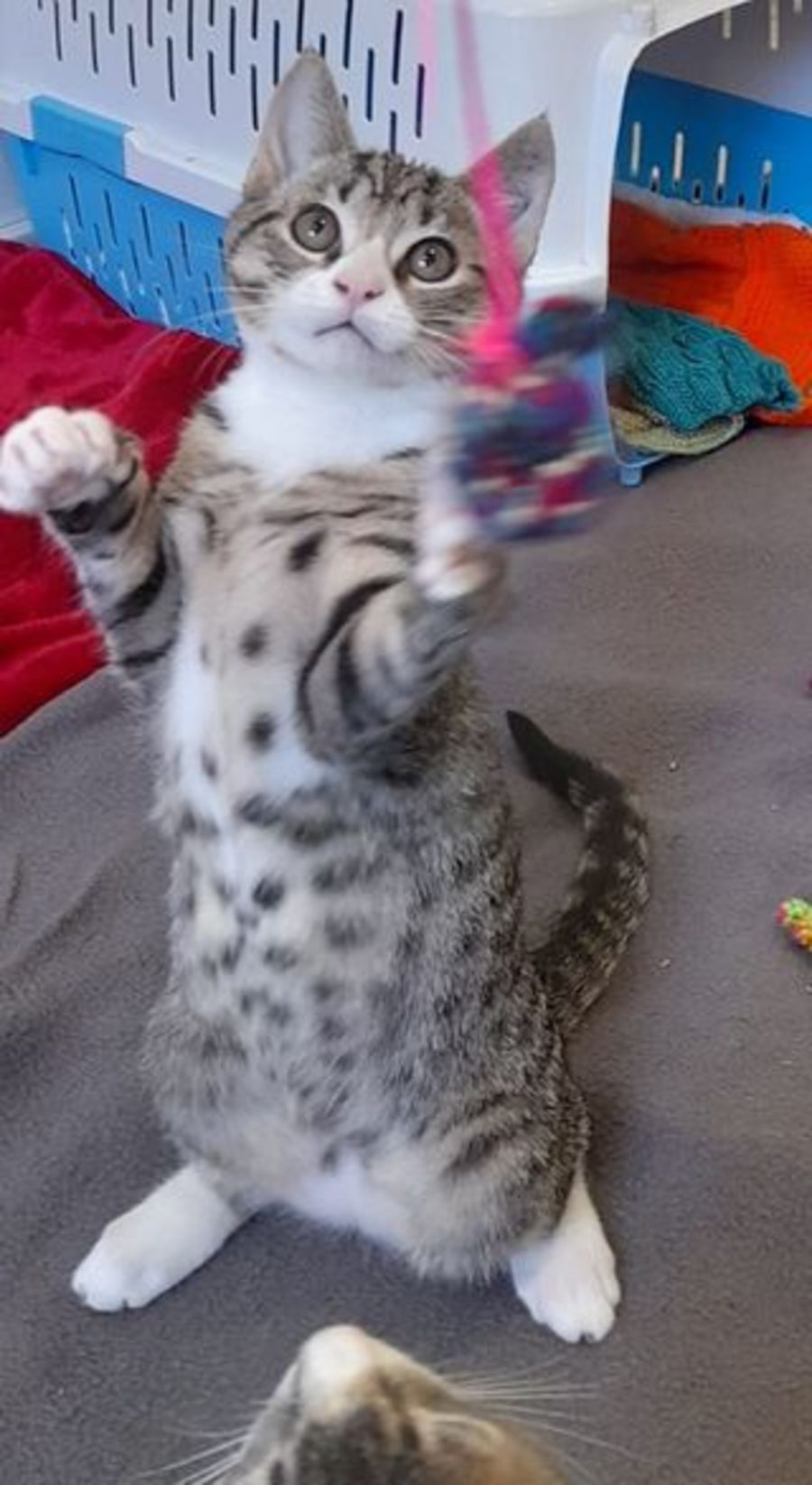 These poor kittens came from a dire situation and then have had an extended time in isolation. They are now learning to interact with more than one person and to run riot through the house like normal kittens should.