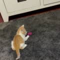 He plays, he tries to run, he loves his food, loves attention, loves following you around the house and his purr is so loud.