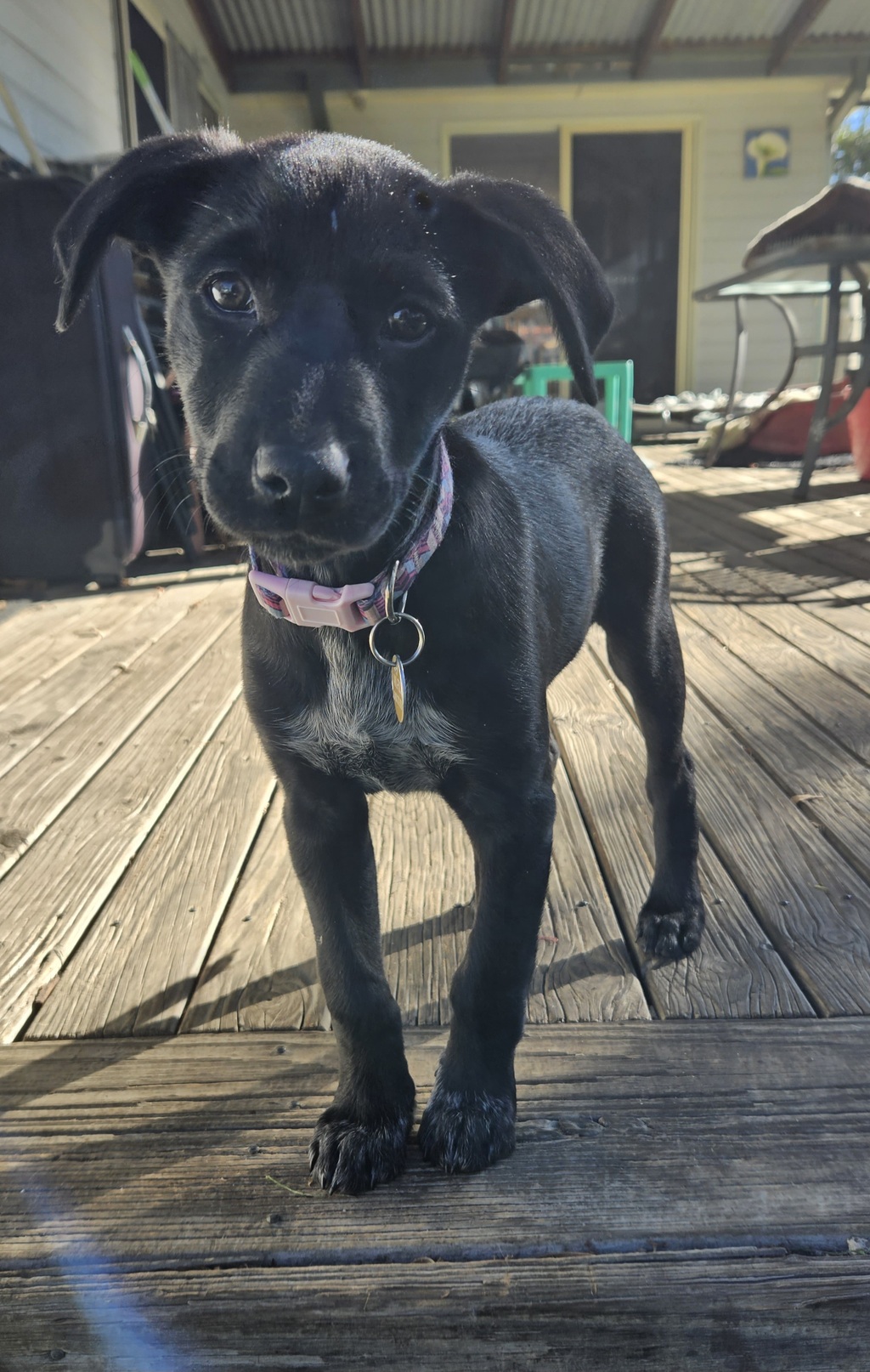 Meet BOO #2954 an 11 week old female pup. She is possibly an Australian Cattle Dog/Wirehaired German Pointer. She is still a baby and learning to be a good puppy. She will need ongoing training and socialising. She's not totally house-trained yet and is growing rapidly so she's expected to be a medium/large dog when fully grown. Boo is still needing 4 meals a day & doesn't like to be left alone so another mature well behaved dog for company would be ideal. She is a little nervous in new situations but she travels well in the car. Small children are not recommended because of her sharp little teeth but she's an affectionate little pup who is also pretty good at entertaining herself with her toys and she enjoys sunbaking or snoozing in the sun or near the fire. Boo will be available for adoption in the Far South Coast Branch area only.