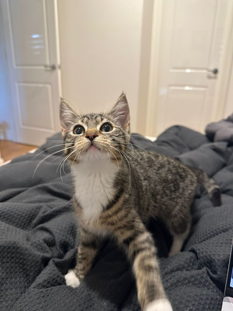 Introducing Sabrina, an adorable tabby kitten who is ready to fill your life with love and joy! With her striking markings and sparkling green eyes, she is as beautiful as can be. Sabrina is a bundle of energy and curiosity, always on the lookout for new adventures and playtime.