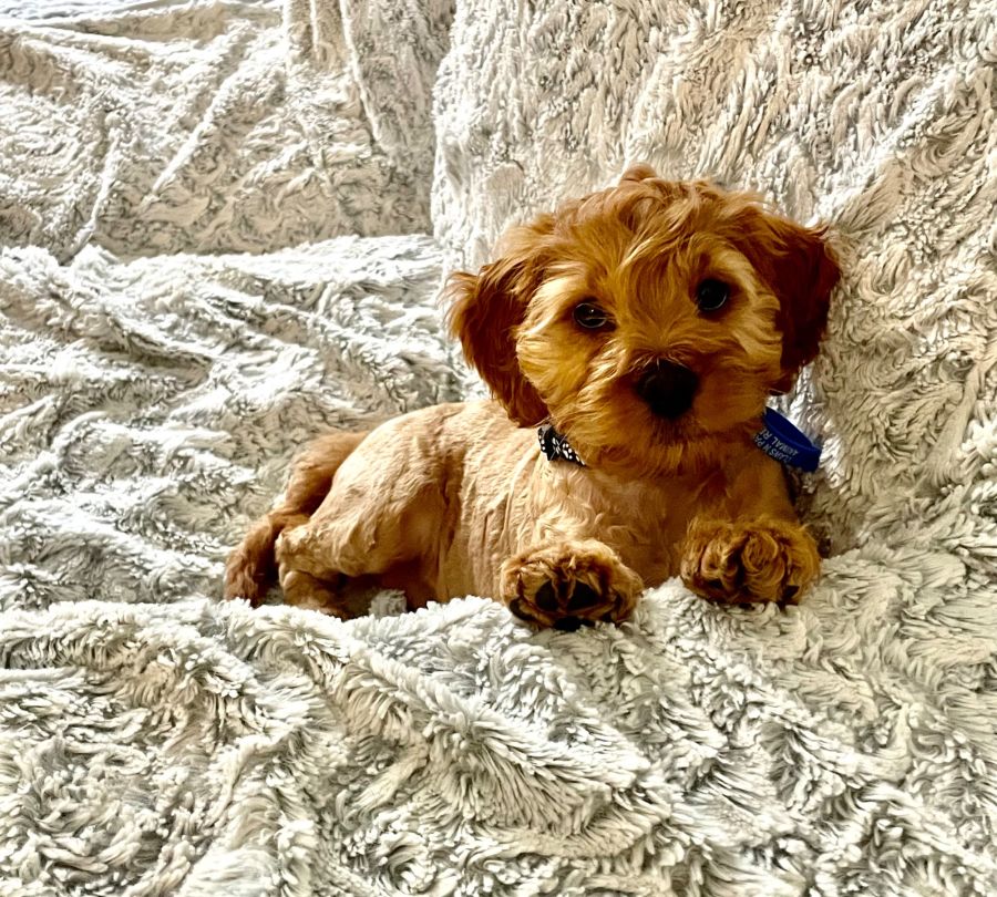Oliver is a poodle x cavalier he will be a small to medium size dog .