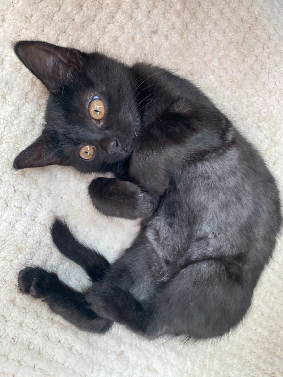 Addie is a sweet little darling. Her mumma is her black, as was Addie when born. As she is getting bigger, her greys are showing. Addie loves a cuddle, and enjoys playing with the other foster cats and kittens she lives with. Addie has great toilet manners. She also enjoys her food and loves fresh water and kitty treats. Addie loves the pet dog where she is fostered.