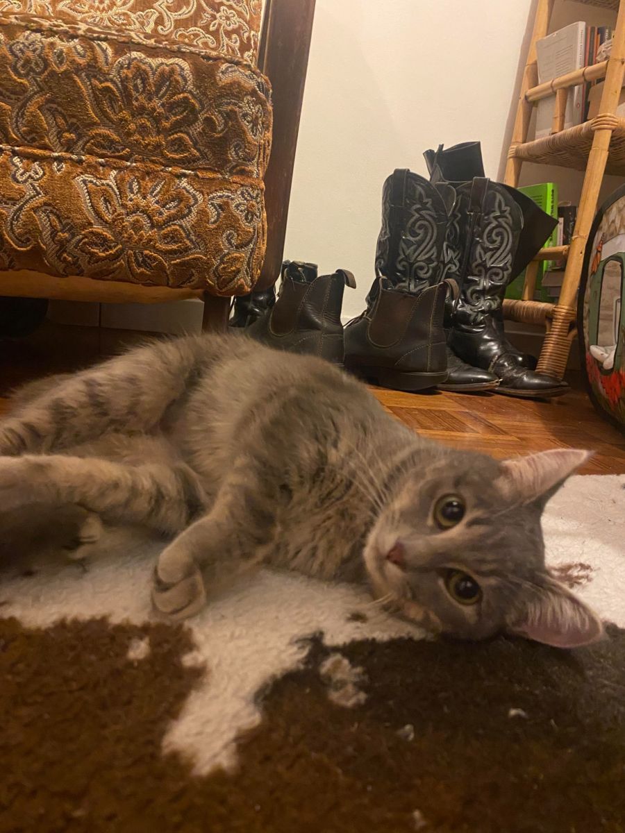 Zelda is a 7 month old short haired domestic cat who loves to hide and snuggle! She is a very curious kitty who loves to explore and play with her cat toys. Her favorite places to hide are in blankets or tucked away in the wardrobe, where she can get lots of good snuggles in. She enjoys the company of other cats and also loves getting petted and cuddled. Though she does not like to be picked up, Zelda will happily curl up on your lap for some quality time together. She loves making biscuits and being nosy! you'll always see her peaking around corners.