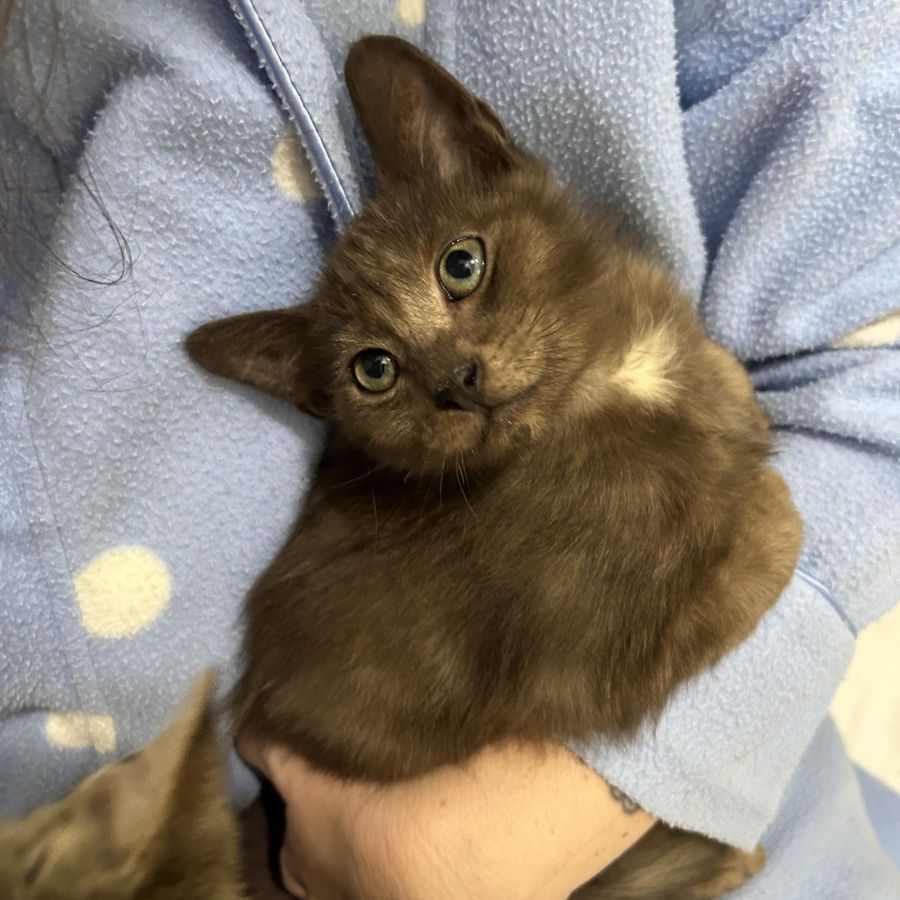 Wolfie is an incredibly loving kitten that will be sure to brighten up any home! He's always ready for some snuggles and cuddles and is happy to make you biscuits. He likes to meow to let you know that he needs attention or cuddles. He has plenty of energy to play around with his humans or other cats and kittens.