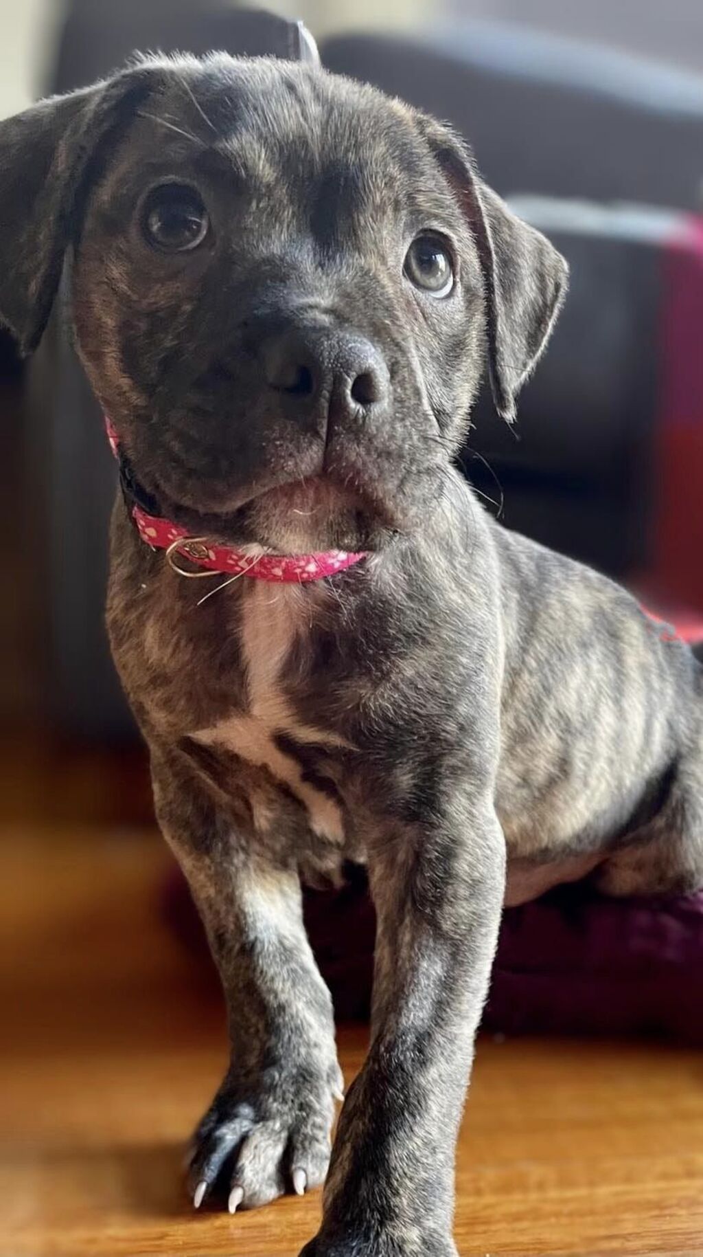 Cocoa Bean was born in our care and has been a spoilt princess and well loved by her foster family and her mum! Just like any 8 week old puppy she is adventurous and sleepy! She has a real love of life and loves snuggles and of course her food.