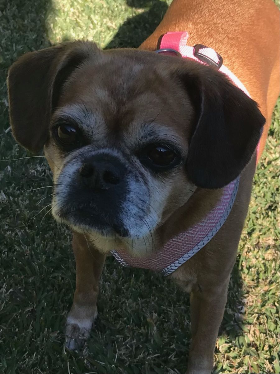Gorgeous Lexi is a 10 year old Pugalier who has found herself searching for a forever family.