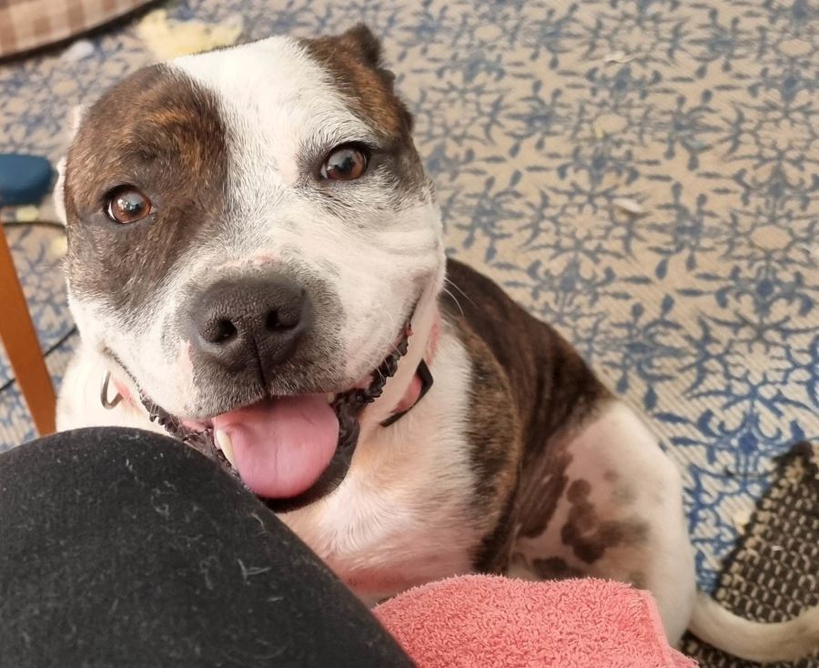 Bailey is gorgeous , sweet very affectionate 6 year old English Staffy, he is small in stature but huge in personality