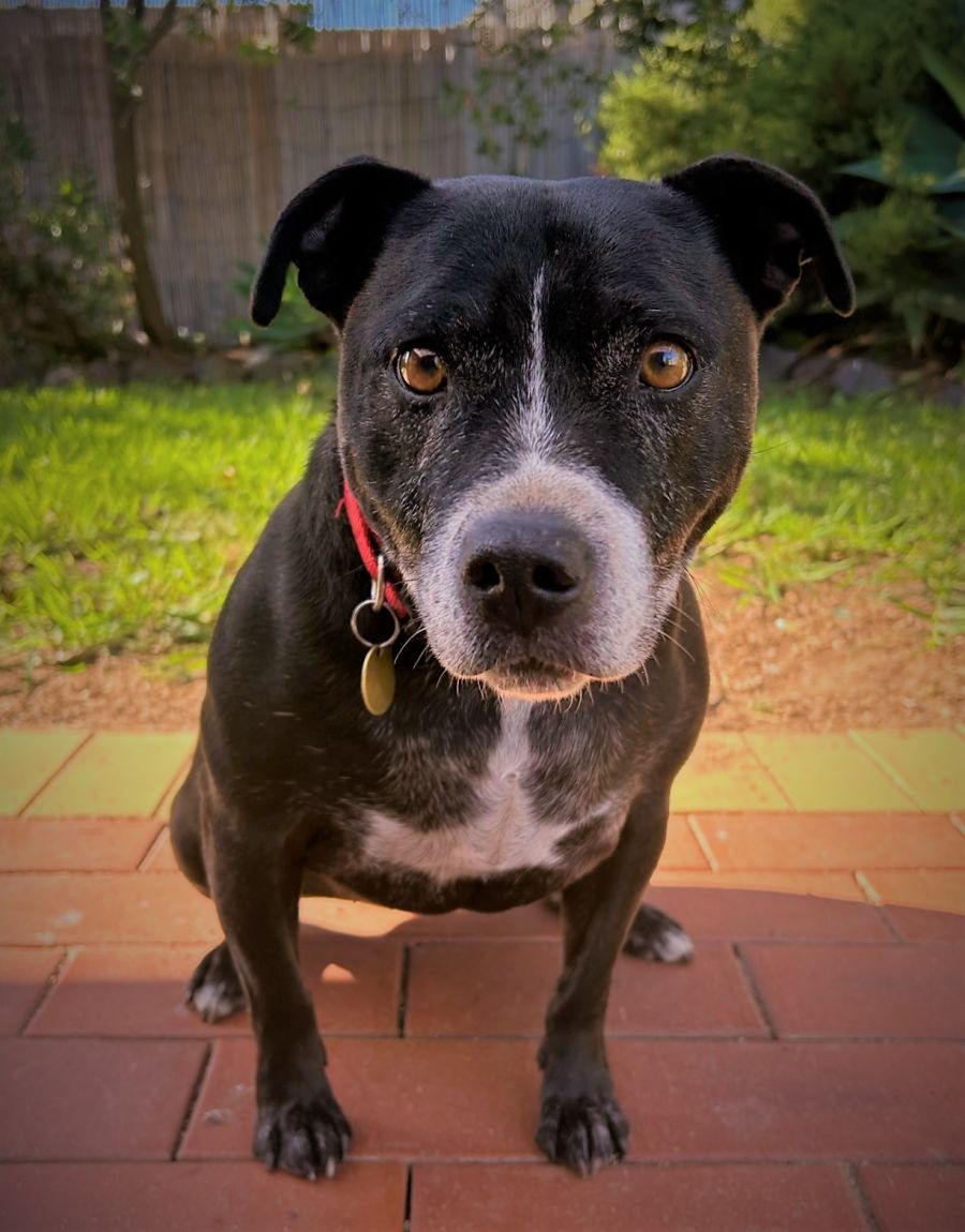 Hello, my name is Lunar but I am also loving referred to as Pumba. I am a happy, sweet, loving, and affectionate girl. I have lived with my family all my life, with children but sadly circumstances beyond my family’s control and through no fault of my own and I am needing a new forever home. Although I’m a little on the chubby side now, YES, I love my food but don’t be fooled I am high energy and active, it takes a bit to wear me out. I love to spend time at the beach running and playing with all sorts of other dogs. I am good in this sense and when out for walks but I can be much to high energy for some dogs. I can be dominant with playing rough, it could lead to an altercation if living with other dogs, so a single dog home is best for me. This is also why I would be better placed with older children that can keep up with me, as I bounce and jump to get love, give a Staffy kiss and get attention. I am quite trainable and with some consistency and boundaries I will response accordingly with time. I am a bubbly exuberant spirited girl with enormous amounts of love to give. Some would call me clingy as I love to be and interact with my people, always happiest when around them and absolutely love to snuggle in close, if I could get in their pocket I would. I enjoy spending time outside in the sun at my leisure but not a fan of the rain, oh and those big thunder sounds and loud firework noises make me shake and hide, they do scare me. As I am energetic, I am thrilled and need to go for a daily walk or two, I walk well on the lead and am good with other dogs going by. I am relaxed and enjoy riding in the car. I have a few skills I can, sit, on your bed, wait, and my recall is good with my current owners but new owner will need to work on it with me. I have good name/s recognition with Lunar and Pumba I don’t mind either one. Bath time doesn’t bother me, the quicker the better though and a shower style bath is more to my liking. Would much prefer to air or be towel dried and although I’m not too fond of a hair dryer, I tolerate it okay. I hope someone special out there that can give me good forever home. So, if you think you can offer me my forever home in return, I will be a loyal, fun loving, happy, and a well natured companion. Please go to Stafford Rescue Victoria’s website where you will find the Adoption Application or click onto the link in the comments under this post. Please make sure you read all the information on the Adoption page, as well as the links at the bottom.