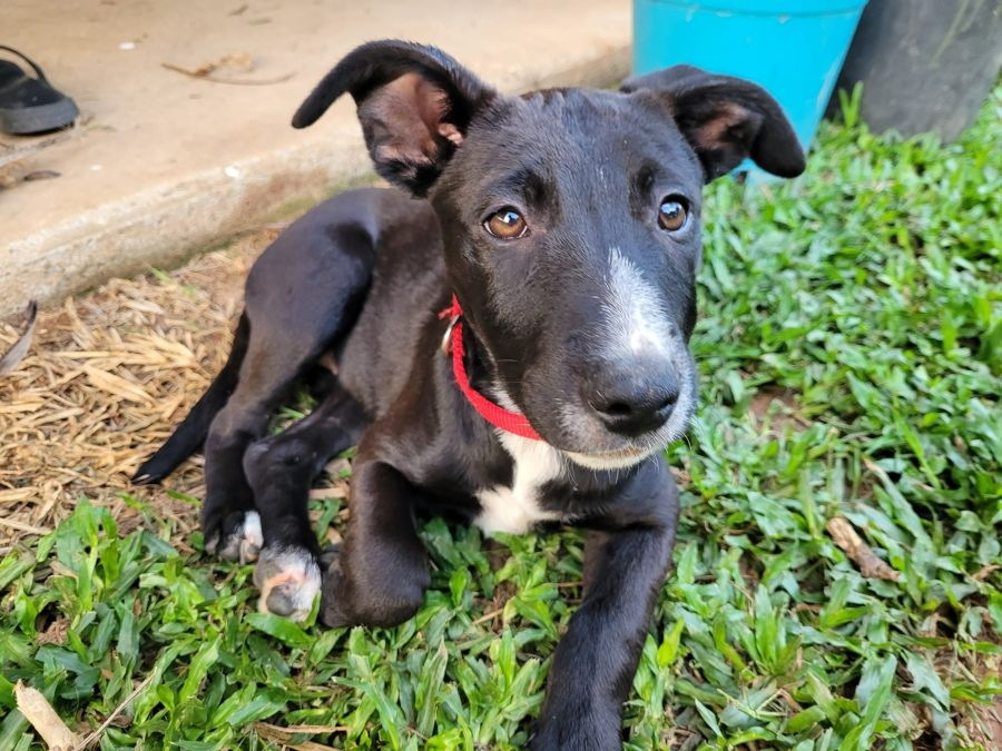 She is quite a bit smaller than her littermates and is expected to be a medium sized dog. Stellar loves playing with her doggy sister, and has started playing with her older doggy foster brother too. She's very submissive and shy meeting new dogs and it takes a bit for her to work up the courage to play with them, possibly because she's smaller than most of the dogs she's met too.