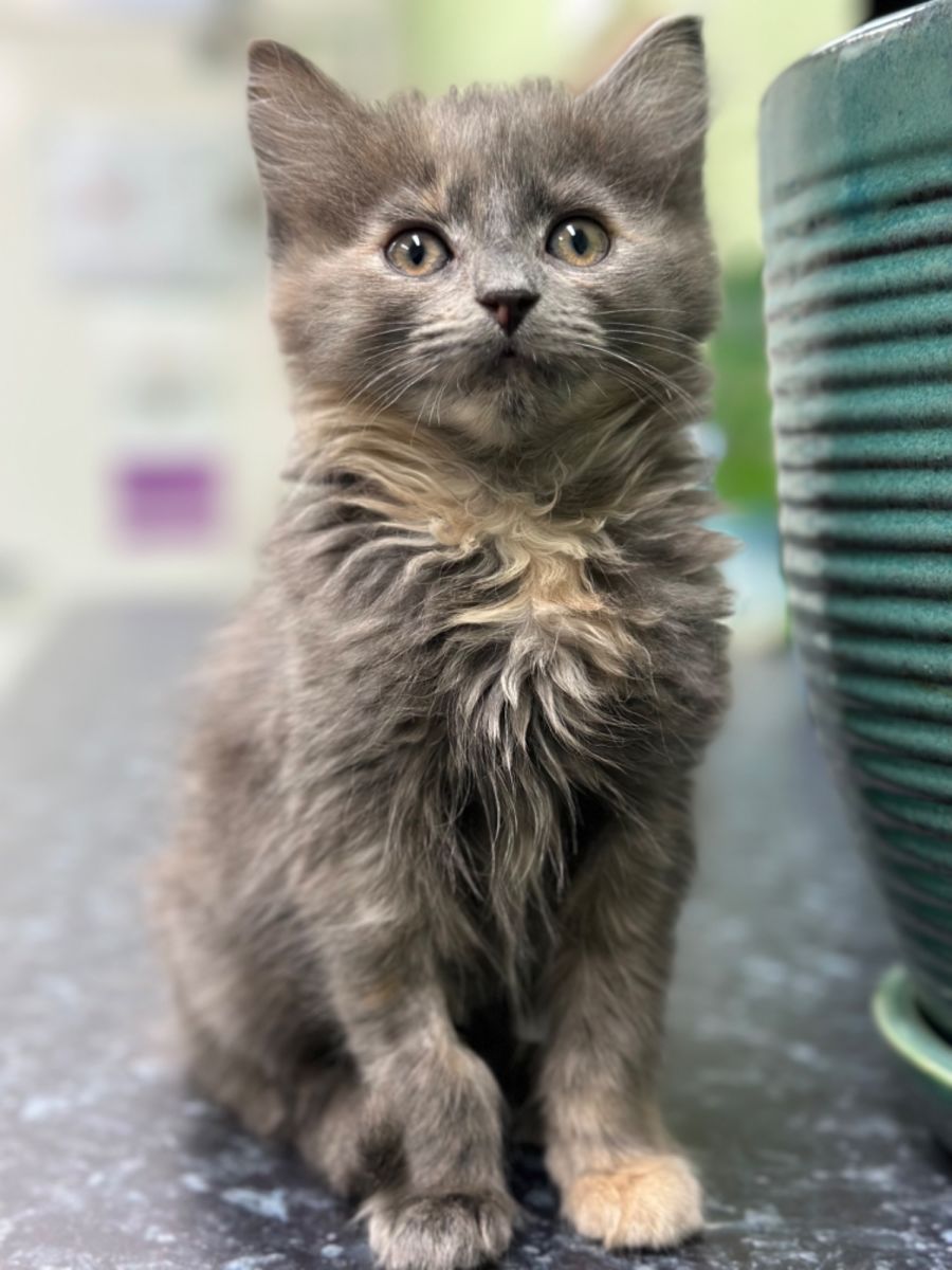 Cookie Crumble is a very sweet girl who loves attention, playing and exploring. She has been raised with 3 other kittens and has been around a dog.
