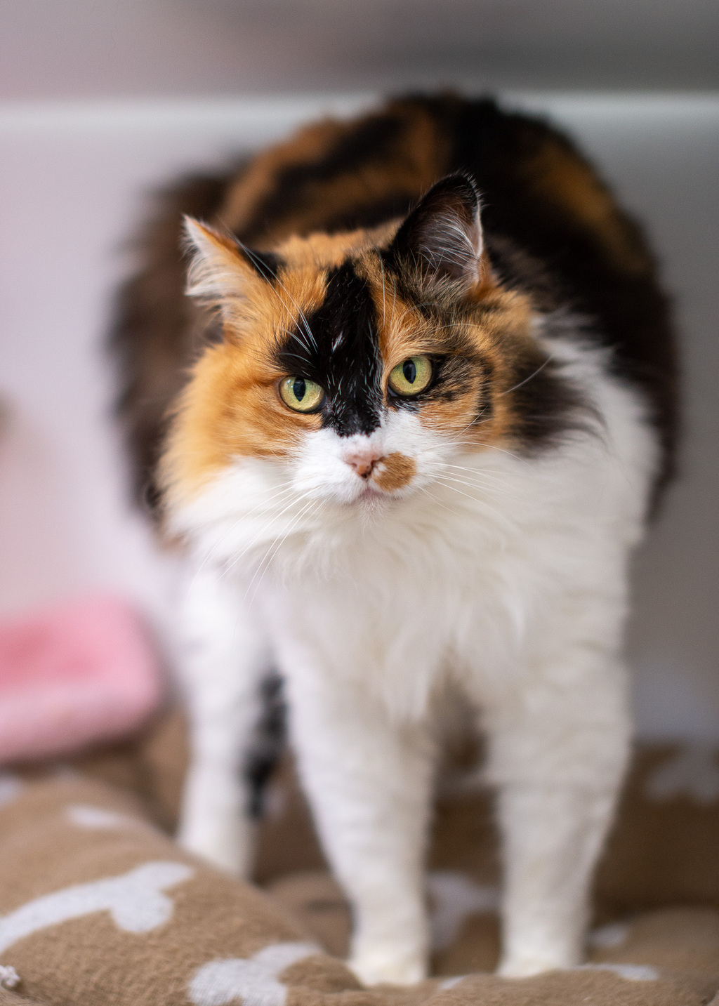 This walking work of art comes with complimentary cat-itude. She is very friendly and loves pats... But IT'S A TRAP! Pat her too much and she'll give you a whack and a little chomp.
