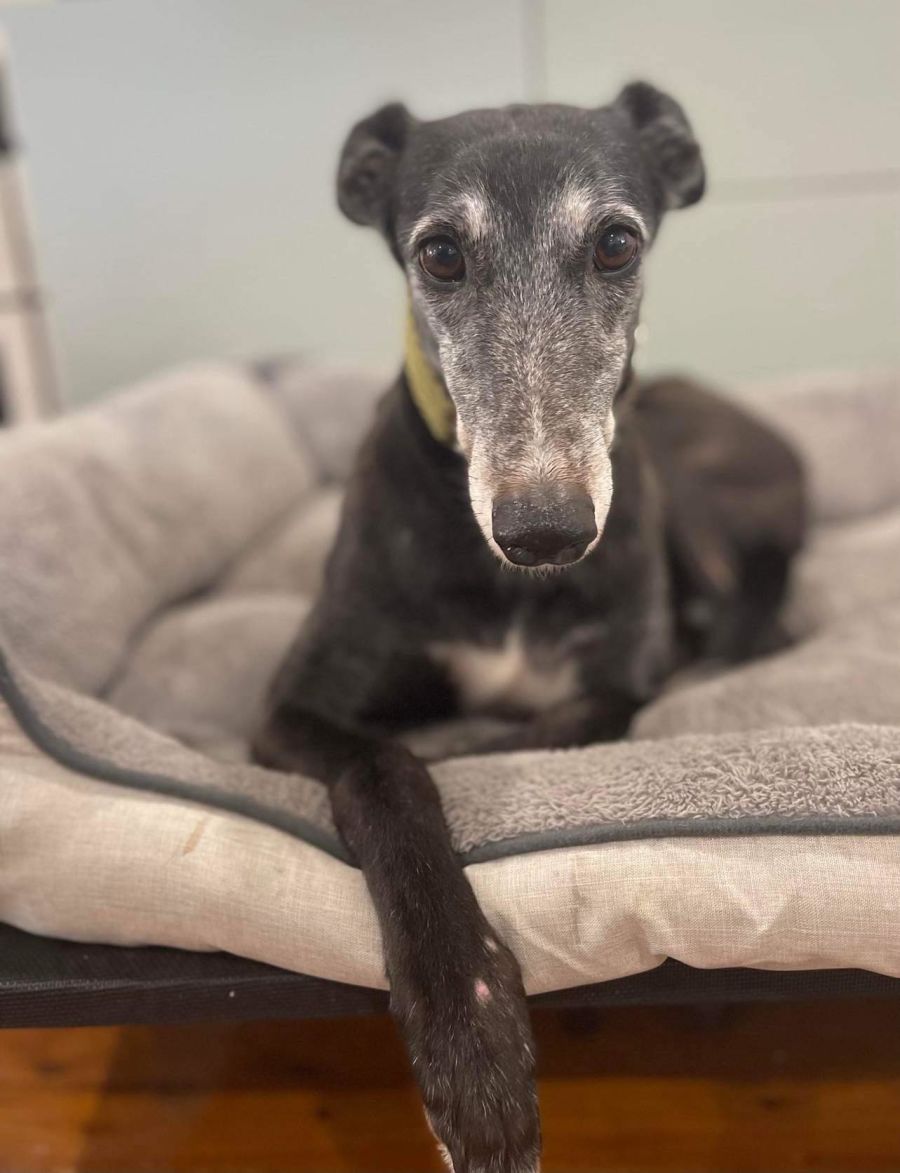In her foster home, Skye currently lives with 2 other greyhounds and enjoys their company. She would love to share her home with another greyhound, but she would also be ok with another medium to large breed dog or as an only dog. Skye has met small dogs on lead and been friendly with them, but we prefer not to home her with small dogs. Skye’s background is one of racing and then breeding. She was entrusted to us to find her a wonderful retirement home as her amazing temperament was loved by everyone that had anything to do with her.