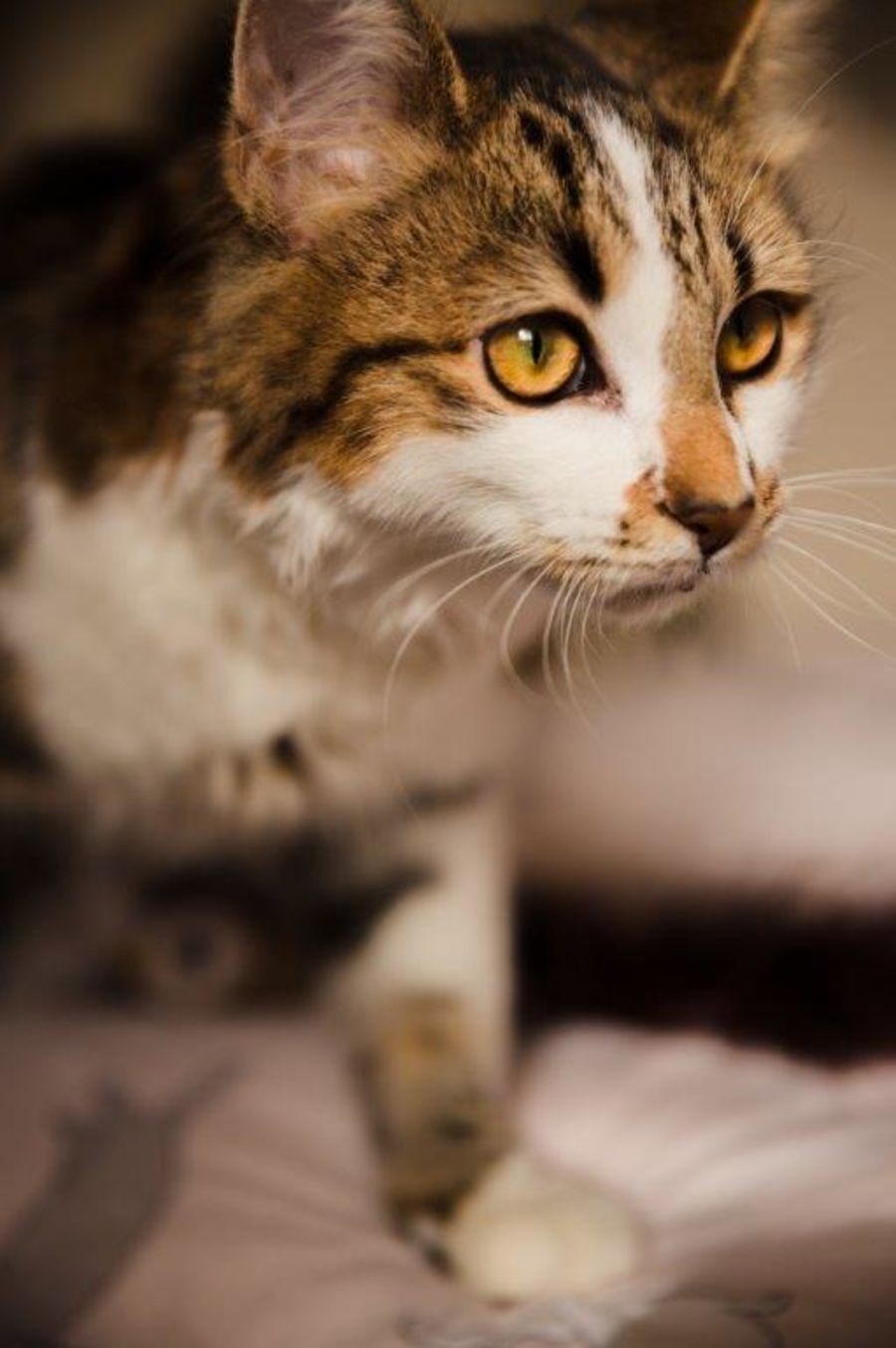 Dusty is simply gorgeous! She is a very attractive cat, with a beautiful, tri-colour, medium coat and a magnificent tail. She is not shy and loves meeting new people, especially if it means getting more cuddles. She likes to be a part of the action and follows her foster carer around the home. She is playful and on the go most of the time.