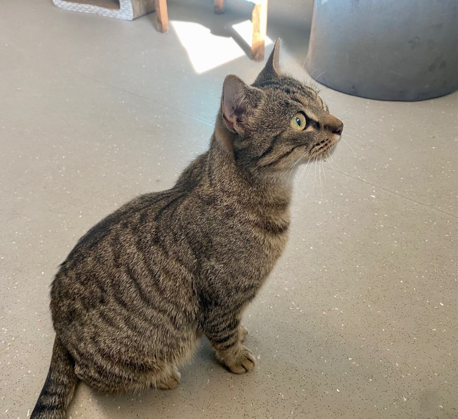 Mochi is a sweet and gentle tabby cat looking for her forever home. She loves to be around her four-legged friends, so if you already have a cat or two at home, she would fit right in! Mochi is affectionate and loves getting pets and cuddles - she'll always be there to greet you with purrs and head bumps when you come home. Her gentle nature makes her the perfect companion animal; not only will she provide lots of love, but also plenty of entertainment. Mochi is sure to bring joy into your life, so why not give her a chance?