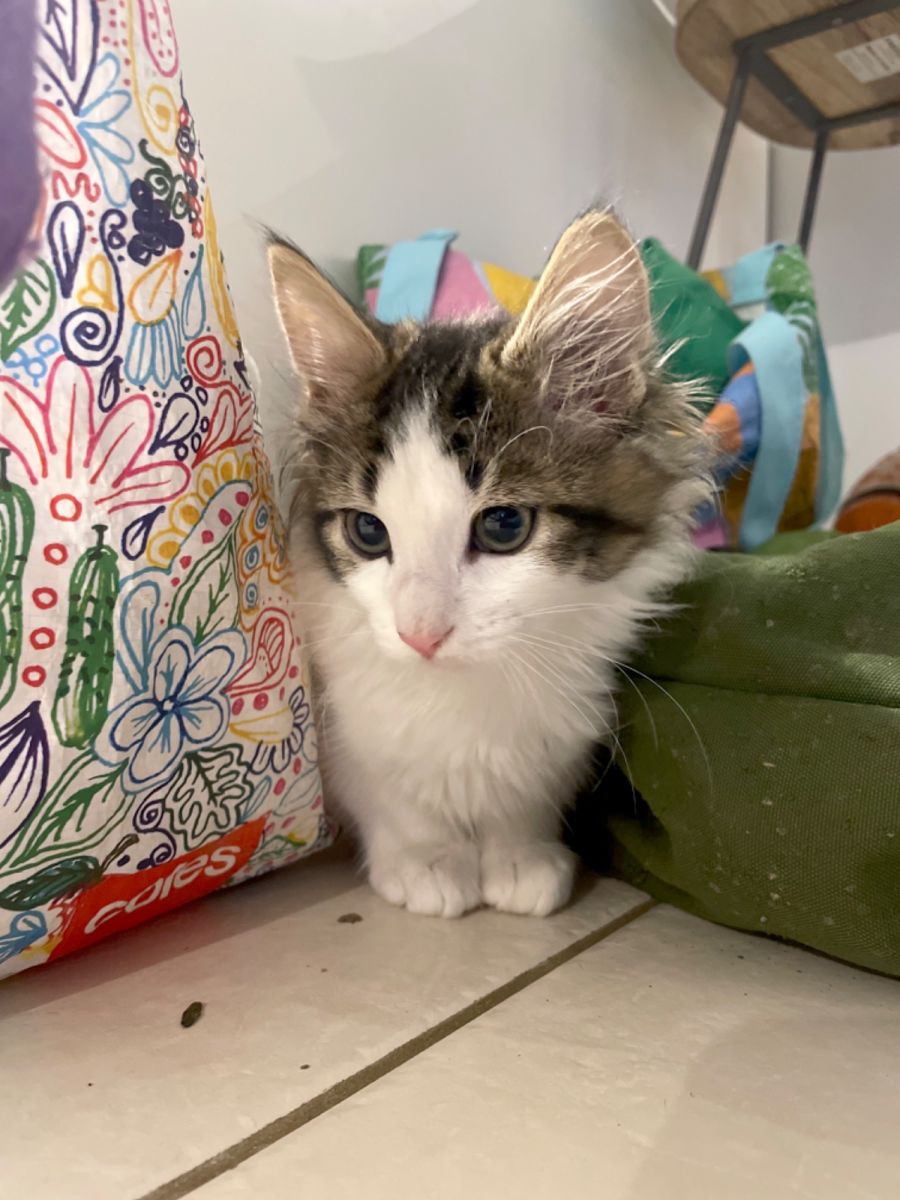 Zeke is a perfectly floofy white/tabby combo with majestic whiskers. He’s brave, he’s playful, he has loads of personality, and when he’s done with it all he’ll settle in for a peaceful purry nap on someone’s lap.