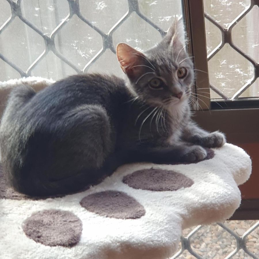 Such a little kitten with a grown up face. She's the sensible big sister to Fiona. Loves her snacks and loves a good head scratch.