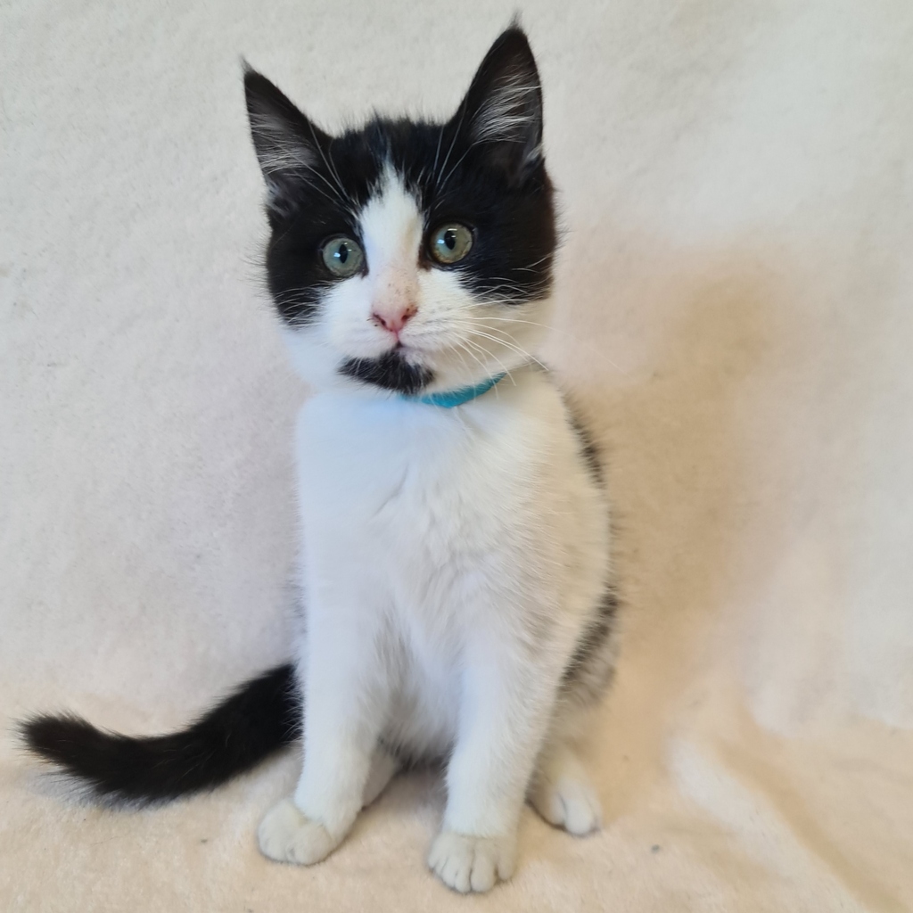 Jay is an adorable little kitten who loves to play and explore. He is quite the social butterfly and enjoys interacting with other cats, although he can be a bit shy at times. He loves to run around the house and will often find any excuse to chase after a string or a ball of yarn. Jay is also quite curious and loves to investigate new things in his environment.