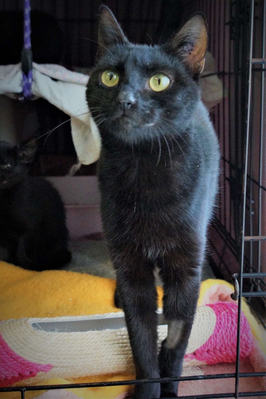 Meet Flora, the gorgeous domestic shorthair who is looking for her forever home. With her sleek black coat, and charming personality, she is the perfect addition to any loving family. Flora was found as a stray mother cat along with her two adorable kittens, and they are all ready to be adopted.