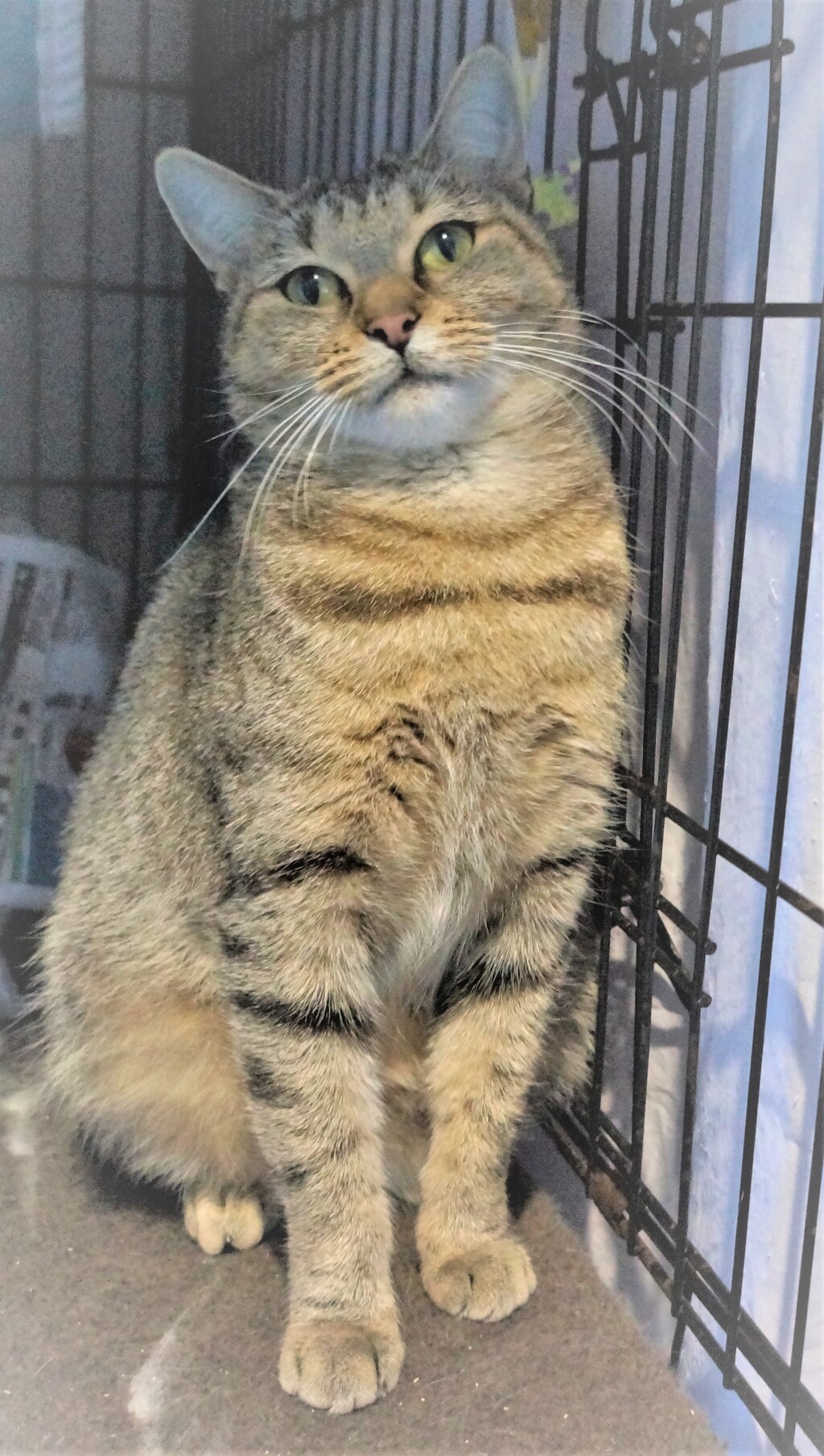 Meet Freda, the beautiful tabby female cat who was found as a stray with her kitten. This lovely girl has a truly special nature that will capture your heart in an instant. Despite her rocky start in life, Freda has remained calm, gentle and incredibly affectionate.