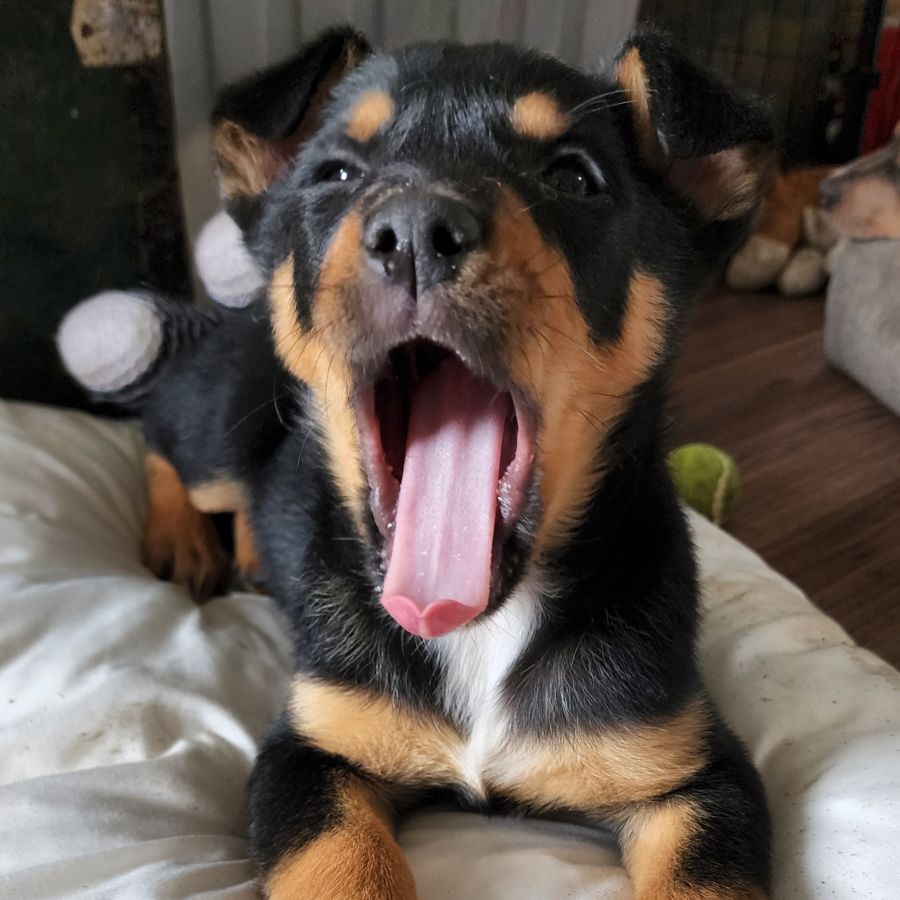 Bentley is believed to be Kelpie X Border collie. This mix of breeds is highly intelligent and eager to please, making puppy training a breeze!