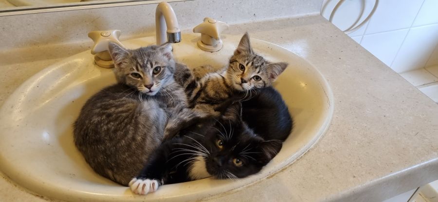 All have their own quirks, Ghost is grey loves a cuddle but also love to play, Leo is black with white paws he loves to be with people and will snuggle all day long, the 2 boys are desexed ready to go. Fleur is a little tabby girl will be desexed before leaving care she is sassy and runs the house like most girls do. All 3 kittens have been raised with kids they are wormed and vaccinated. Contact radar for application on the beautiful 12 week old kittens . They are waiting to love their new families . All are very affectionate cats with their own quirks which we all love about them