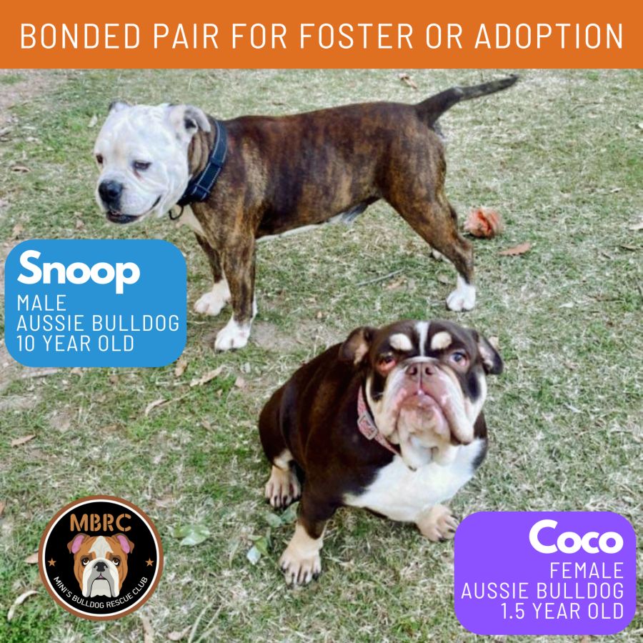 Meet Snoop and Coco! They are They are a bonded pair of Aussie Bulldogs, and they must stay together.