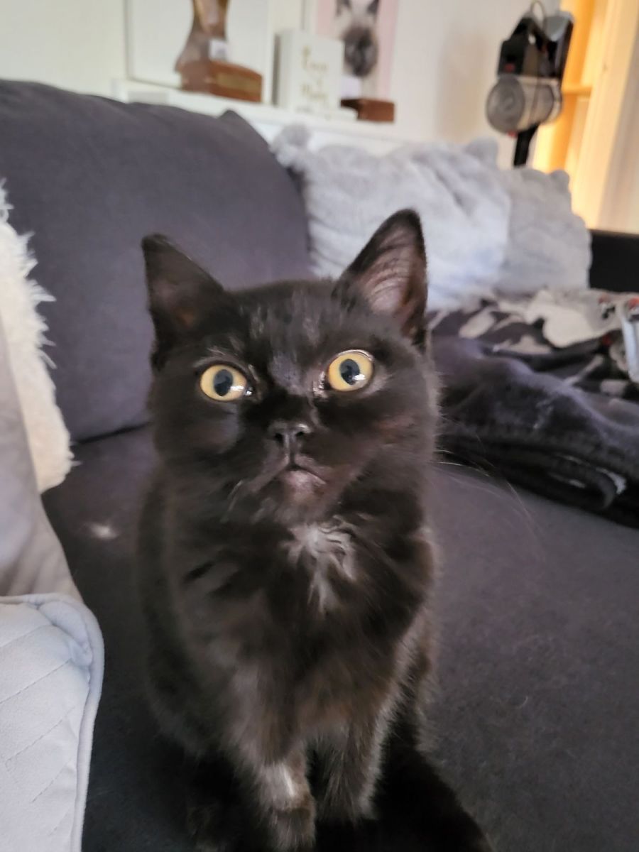 Mishka is a beautiful 3.5 month old ragdoll and British blue short hair mix who has been sadly surrendered by her human parents for being "black and ugly". Despite this, Mishka loves people and craves attention from her humans. She follows them around the house meowing, and likes to stick out her tongue when she does so. She is quite vocal, so it’s important that she goes to a home that can appreciate her need for constant attention and affection.