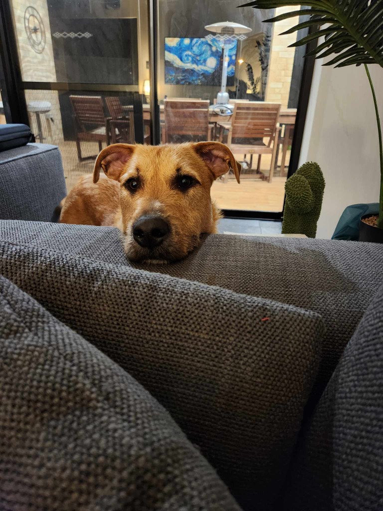 Absolute hunk-a-spunk Flynn is a gorgeous wolfhound blend (not sure what he's blended with 😉) who came down from Kalgoorlie to the big smoke a couple of months ago and has been living it up in foster care.