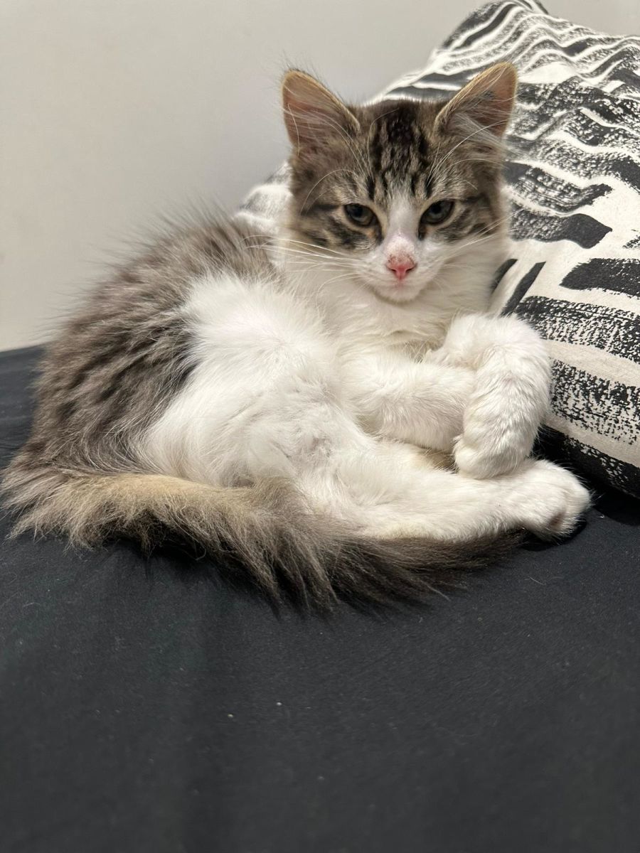 Zoro is a handsome kitten with an outgoing personality. He loves to explore and is always looking for adventure, but also appreciates the comfort of home. Zoro is a very sweet and gentle soul who loves to cuddle up for some well-deserved affection. He is an incredibly loving companion and enjoys spending quality time with his family, whether it be playing or just relaxing in your lap.