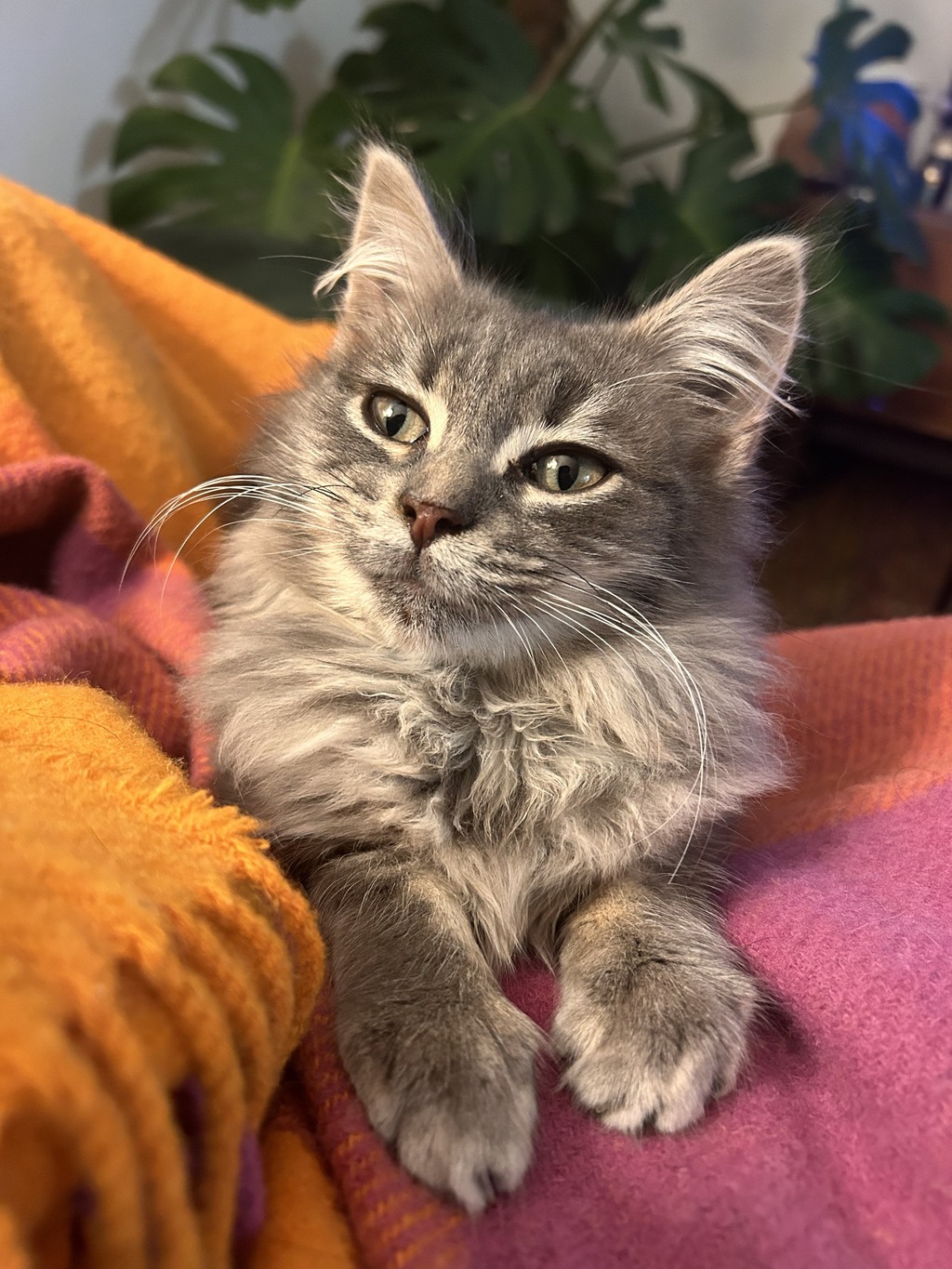Sir Boris keeps himself occupied most of the time, but he still loves attention from his humans. He is an all-around great companion who would love nothing more than to find a home that can provide him with the safety and security he needs to thrive. He's a typical kitten who loves to explore and loves his play time, so lots of toys and fun things to do will be great.