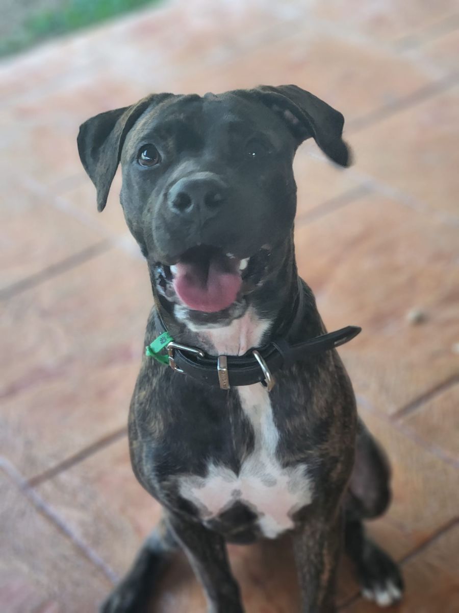 Bailey is your typical staffy x breed, she just loves her food, loves her human attention and loves to play. After a good play in the back yard Bailey is happy to lay by the back door.