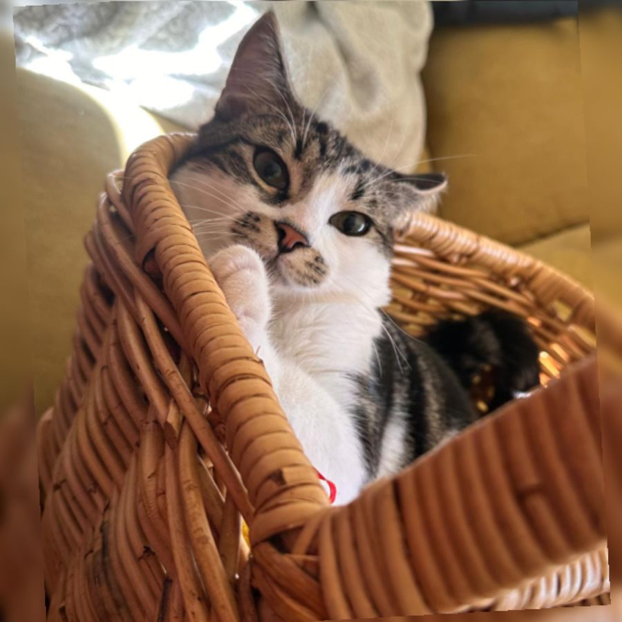 Pam Pam is a male teen cat who loves to cuddle and show affection. He loves being around people and has a very chilled-out demeanor, which makes him the perfect companion for someone looking for an easy-going pet. Pam Pam is incredibly cuddly and loves to spend time with people, so he's sure to make a great addition to any home.
