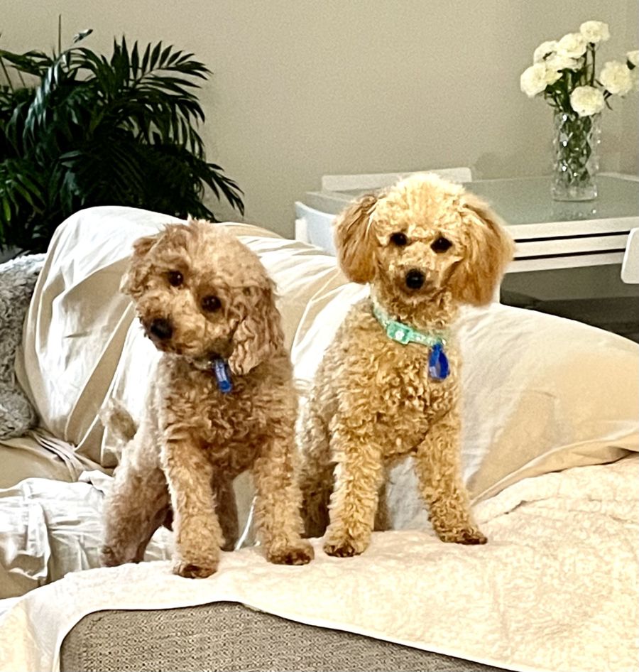 and are great at night they cuddle up together and you don’t hear a peep from them all night . Roxie also loves to go for a walk and walks great on the lead .