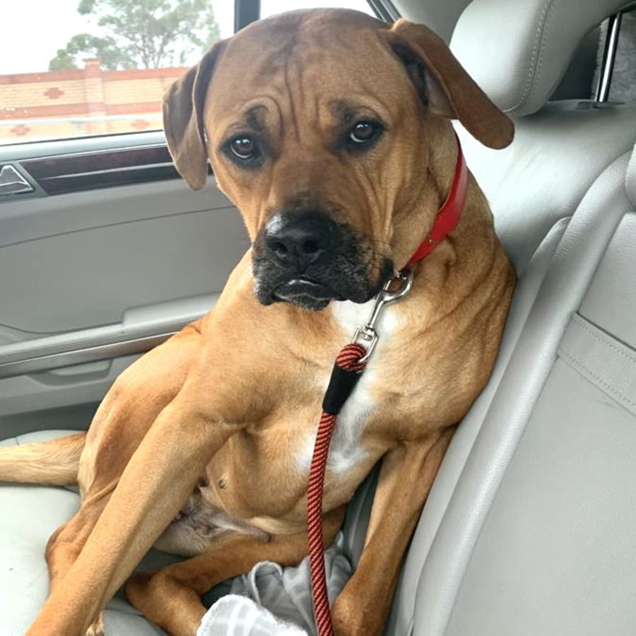 Honey Joy (Karma) is an absolutely wonderful, loving, smoochy French Mastiff X, who is searching for a loving home.