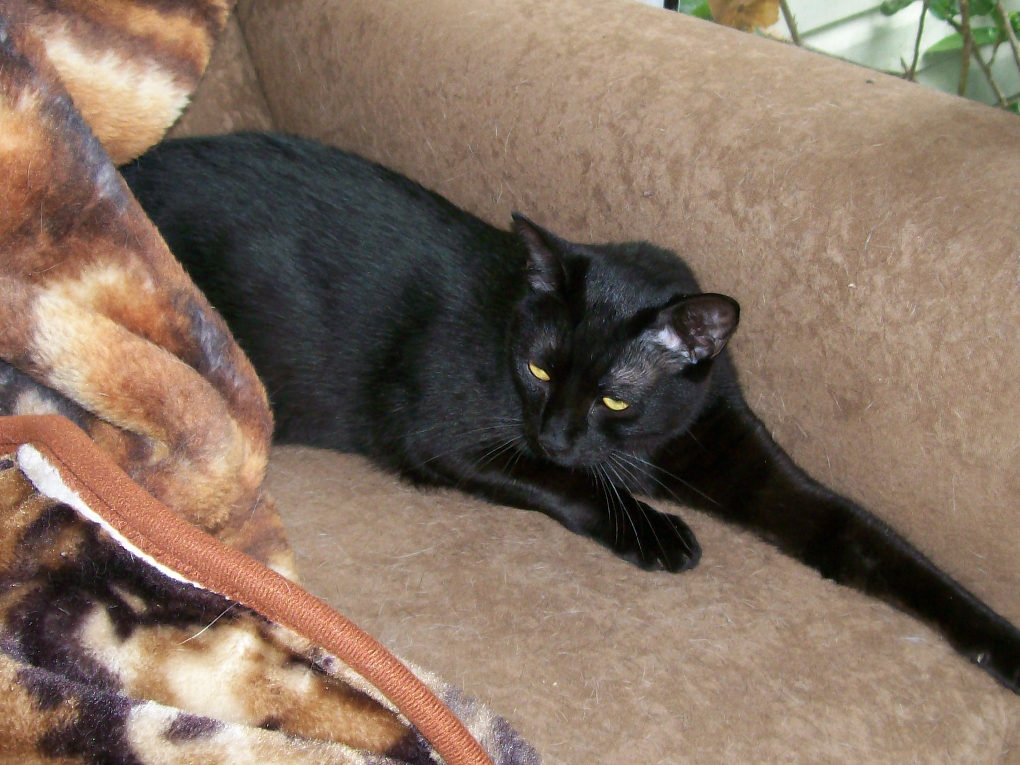 Frisky is looking for a fairly quiet household. He is very timid until he gets to know you but is then very friendly and affectionate. He would love a house with another cat as he gets on well with his feline friends