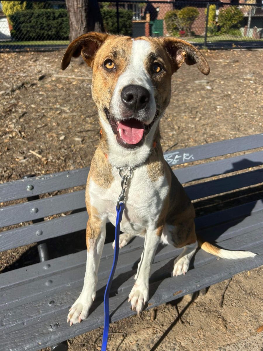 No matter where she goes, Mango is admired by all. Everyone comments on how pretty she is, and she really does have a uniquely beautiful set of markings. To match her good looks, Mango has a lovely temperament. She is extremely sweet and loving in nature, always willing to please you. Mango loves getting pats and cuddles and will sometimes roll around in happiness when she gets attention. She is a very social dog with all people that she meets, and she greets visitors with a waggy tail.