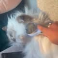 A typical day for Nelly starts with waking up early and letting you know it's time to start the day. She'll have a short exploration in the enclosed garden before returning inside, ready for playtime. Most of her activity happens in the morning, followed by a snooze-filled afternoon. Nelly prefers to stay close to her human, often sleeping in the same room and waiting outside the bathroom for your return. Throughout the day, she'll happily engage in play and brush sessions.