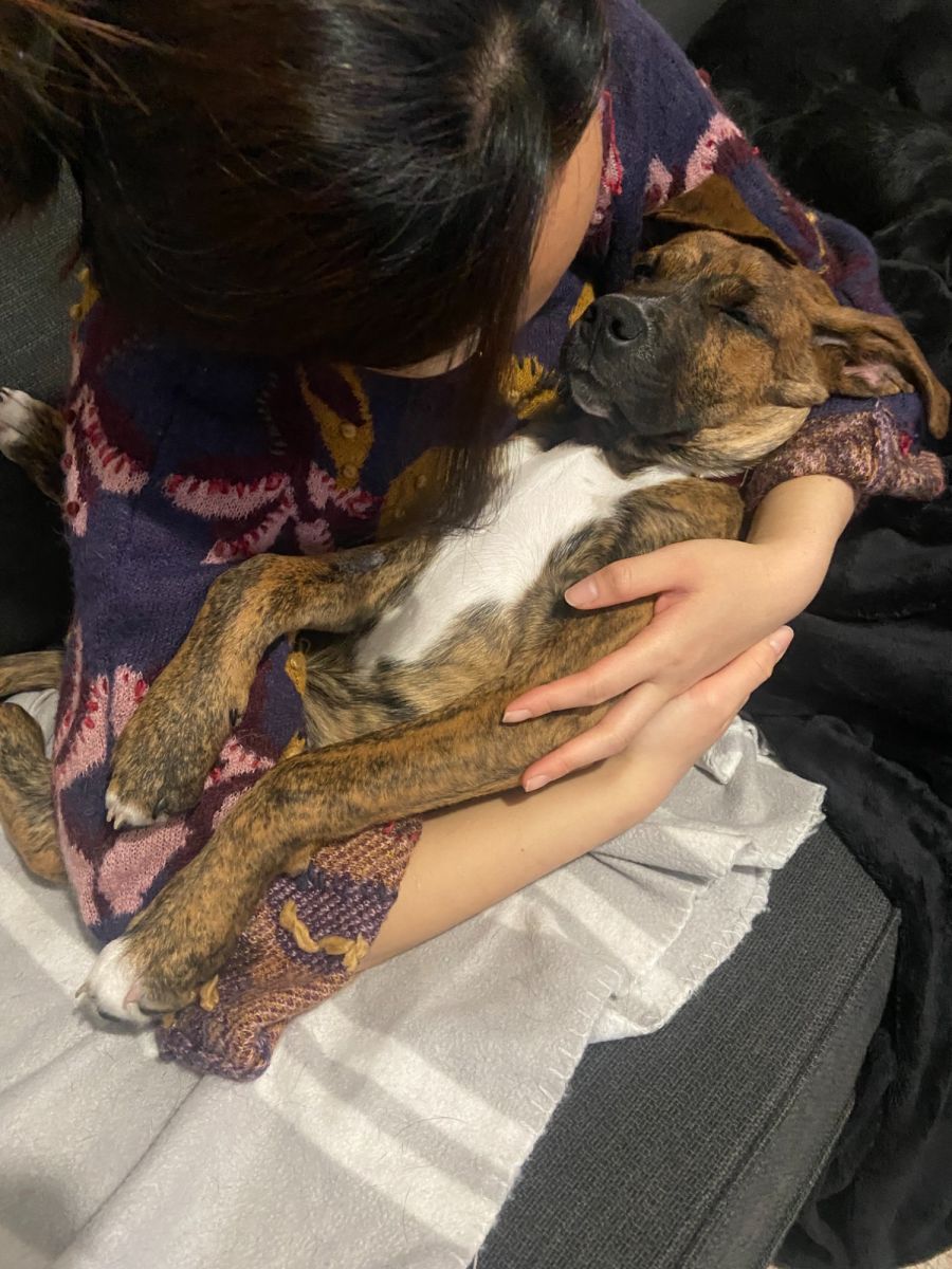 Barney is a very affectionate and loving dog. He loves having belly and chest scratches, and would be down for a cuddle anytime of the day. He is quirky and likes to sleep on his back like a human. He loves his food and treatos, and the current favourite is his beef brisket bone!