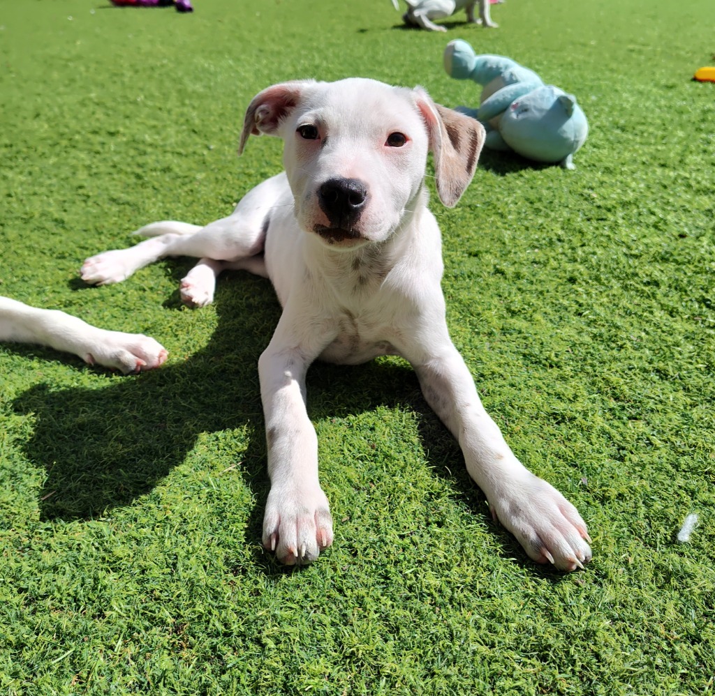 Olivia is in care with adult dogs and her litter mates and has been well socialised. She is a cuddly girl who loves a snuggle before bedtime. Being a Staffy x Whippet type breed, she will enjoy regular exercise and lots of playdates.