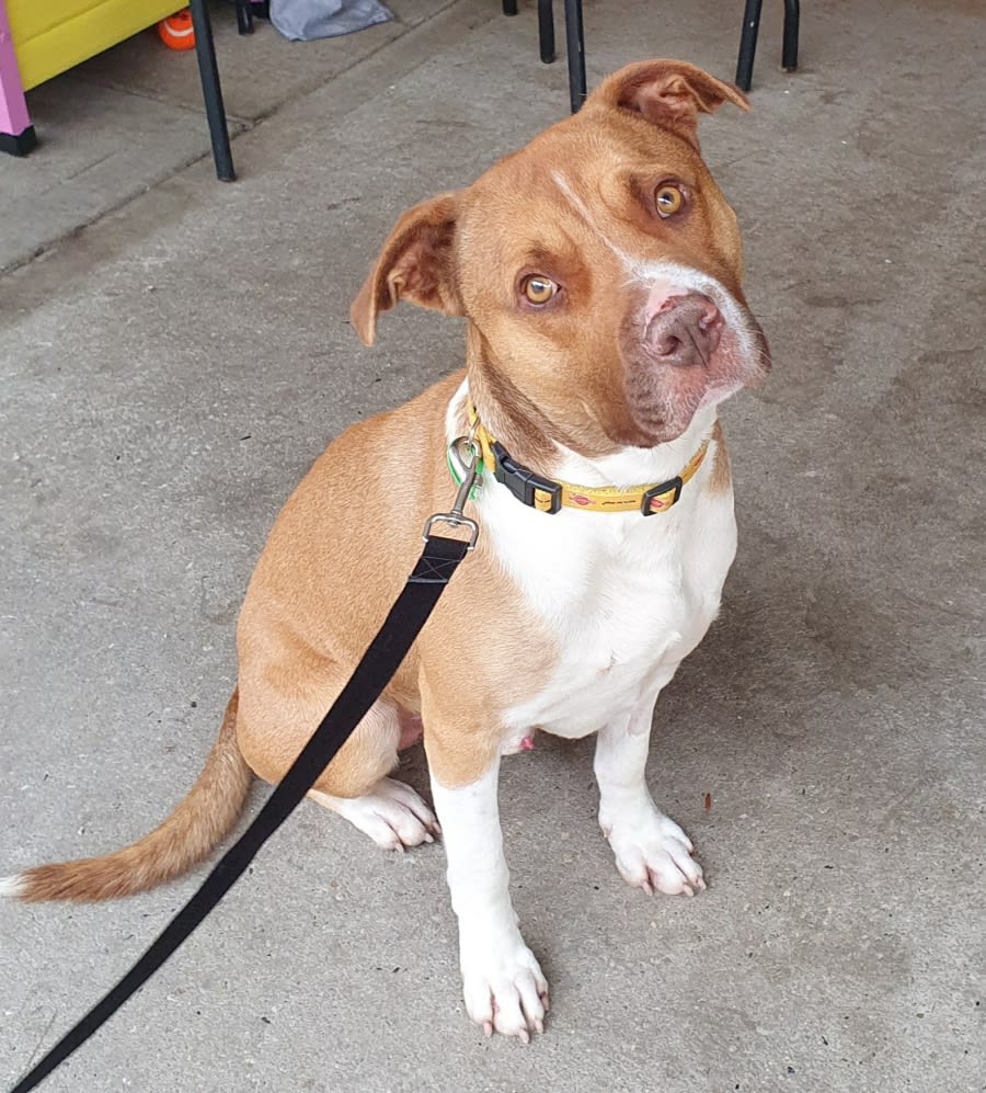 So now he is looking for someone to be his forever friend. He is a two year old Staffy cross. Bozo is excited to meet new people but soon settles down.