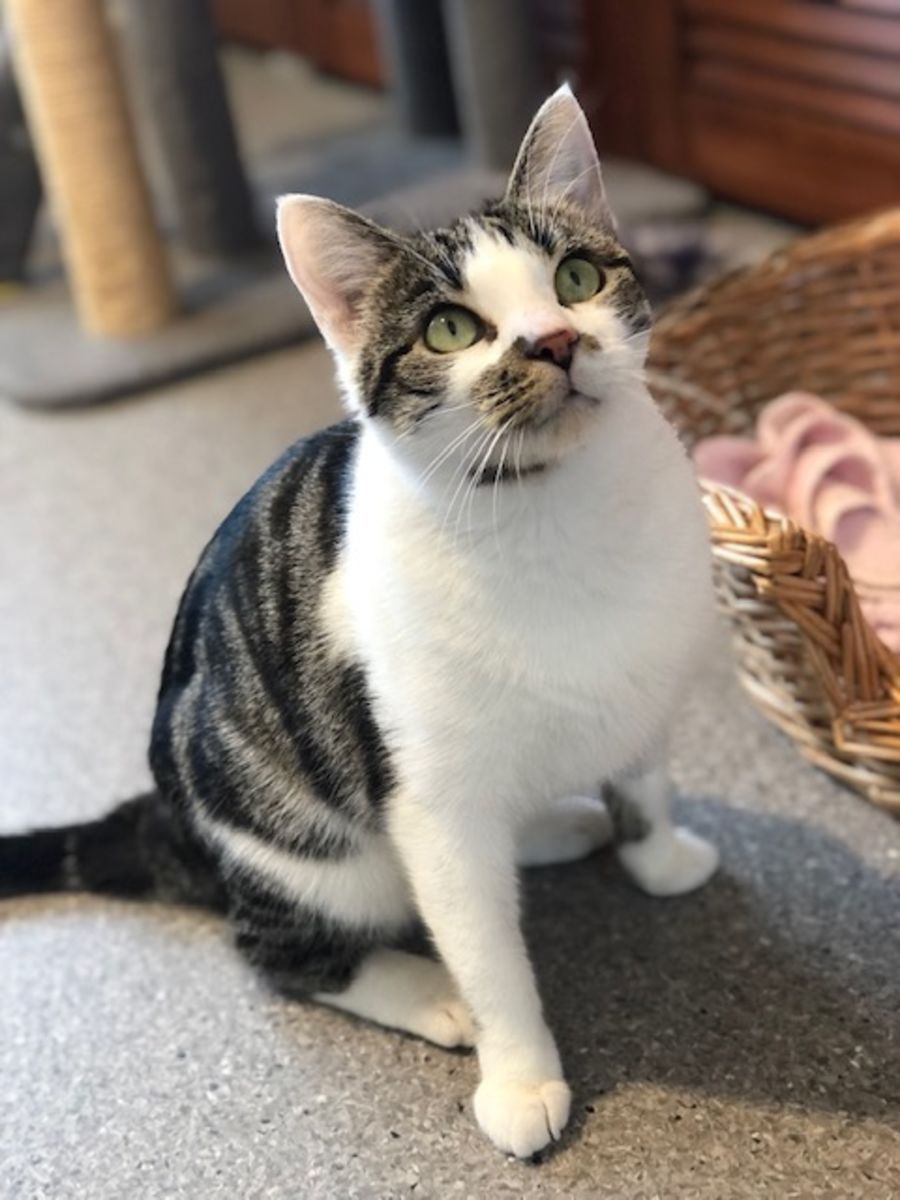 Lovely Cleo came into us as a new mum with her two kittens. She was a shy rescue cat but some love and attention was all she needed to let her true personality shine! Cleo has blossomed into a friendly girl who loves a cuddle and will be so happy in a home of her own. She is a very young mum, we suspect under a year old herself. If someone is looking for a young adult cat to settle in for a long happy life together, she may be the girl for you! She comes desexed, vaccinated, microchipped and up to date with all parasite prevention.