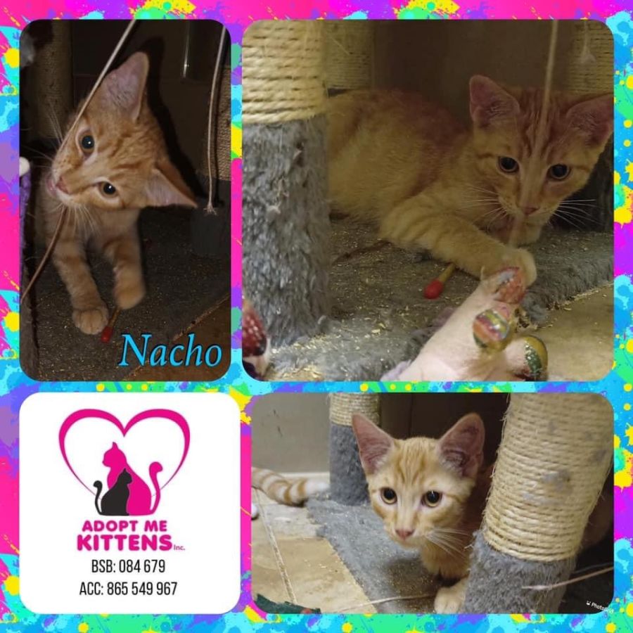 Nacho is taking time to settle into human company but would make a great shed cat as he is super active. He has started to play but isn’t keen on the pettance. He loves lazying on the couch but runs from people. This boy loves his food and other cats. Not suitable to a home with inside dogs. His adoption fee is $50 which includes desex operation, microchip and first two vaccinations.