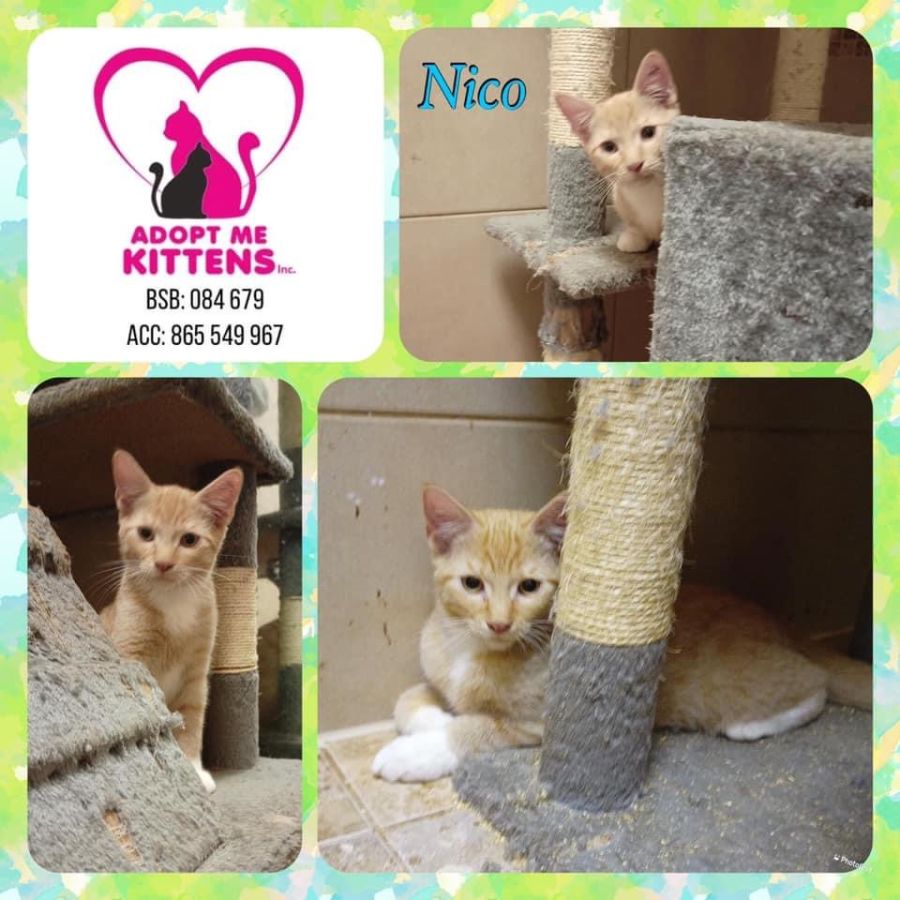 Nico is the shyest of the three brothers. He isn’t keen yet on people but loves his siblings. He would make a great shed cat as he is super active. His adoption fee is $50 which includes desex operation, microchip and first two vaccinations.
