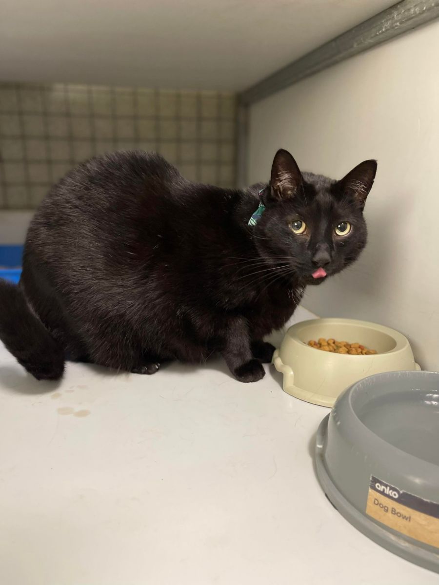 IMP 83 PHAT CAT. Phat Cat is a 7-year-old Black DSH who was reluctantly surrendered by his owners as he wasn't compatible with their existing cat. He was adopted but returned as he was "full on" for someone with no cat experience. He was originally adopted from the RSPCA and has an unknown history before that. The previous owners describe him as a very warm and loving cat who adores being stroked, cuddled, loves chin rubs, ear tugs and back scratches. He has learned not to sit on their lap while they are on the toilet. He loves men and women but unsure how he would cope with small kids. He is strictly an indoor cat, who has been on weight management food to loose some excess kgs he a gained over the years. He will need a home with no other animals or young kids. In the Shelter, he has been extremely pleasant, easygoing, easy to handle and very clean. If you would like to meet this beautiful boy please contact the shelter on 6583 3488. All his vet work is completed and his adoption fee is $204. He comes with his bed, weight food, cat litter and some other belongings.
