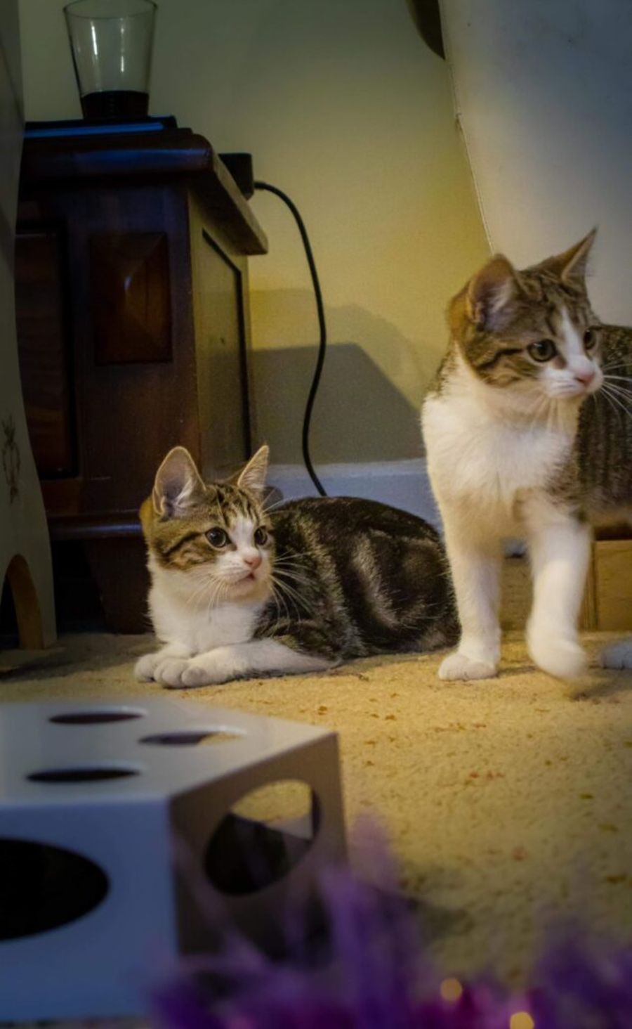 During the day they love to play with each other and keep themselves entertained, when it’s ready for bed they’ll be the first to run to the bedroom ready for some snuggled with their foster mum & other resident cats.