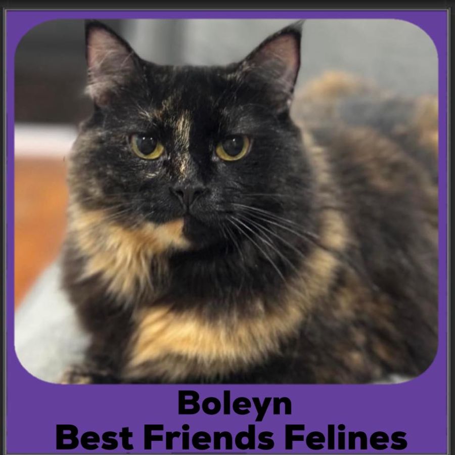 Boleyn joined BFF from a hoarding situation in not the best shape. After many weeks of TLC, great food and clean environment she is a changed kitty.