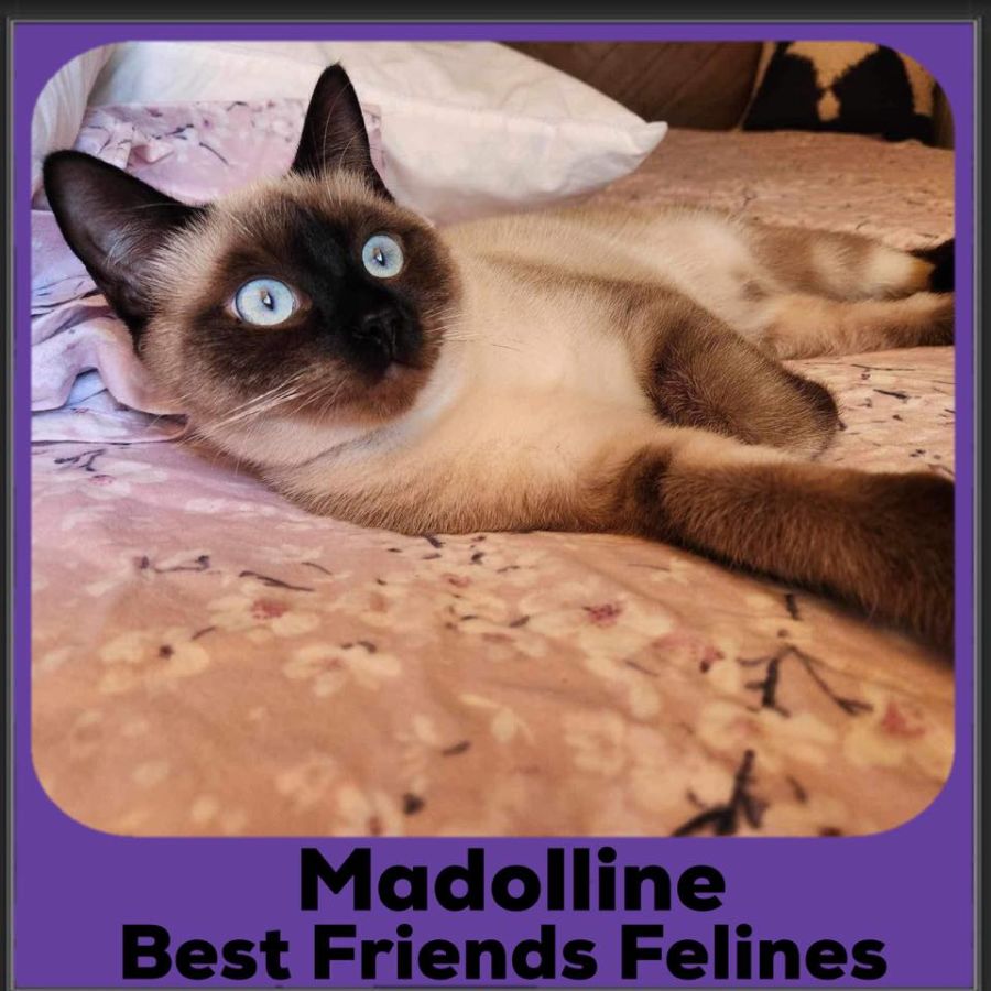 My name is Madolline and I am a Tonkinese X, but my Foster Mum says I am a bit confused as sometimes I think I am part dog! I was very scared and timid when I came to BFF, and while I am quickly learning to love affection and people, I need a quiet and patient home where I can take my time to settle in. My Foster Mum also gives me Rescue Remedy every day to help my confidence so I will need a forever home that is happy to keep this up while I learn that I am safe.