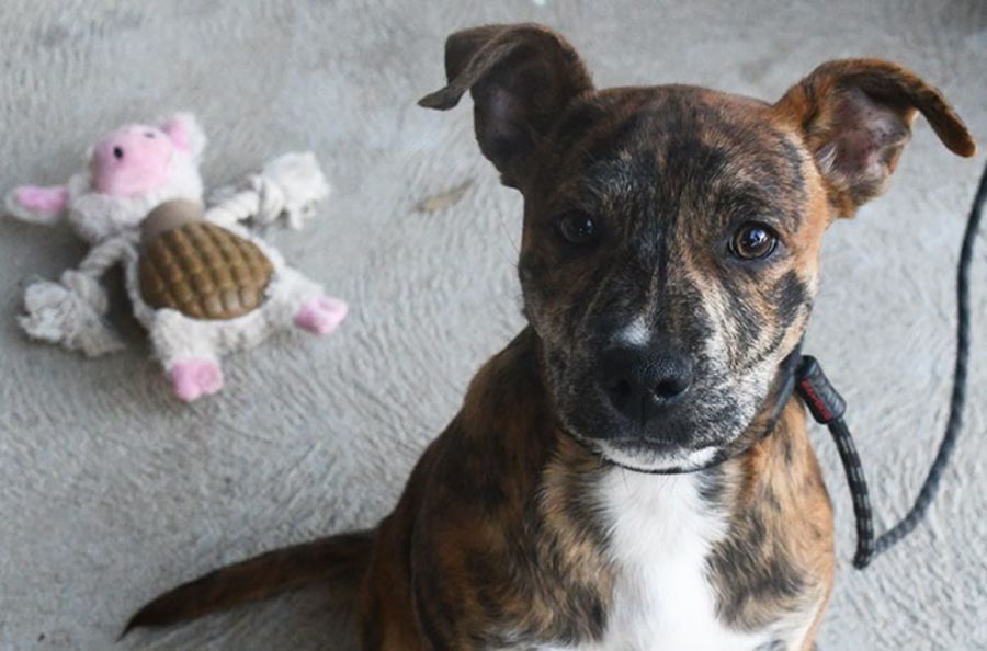 As a puppy, Larry's energy levels are high, and he will benefit from daily exercise and walks. Taking him on outdoor adventures and giving him plenty of playtime will keep him happy and content. He walks well on a leash and only pulls when overcome with excitement.